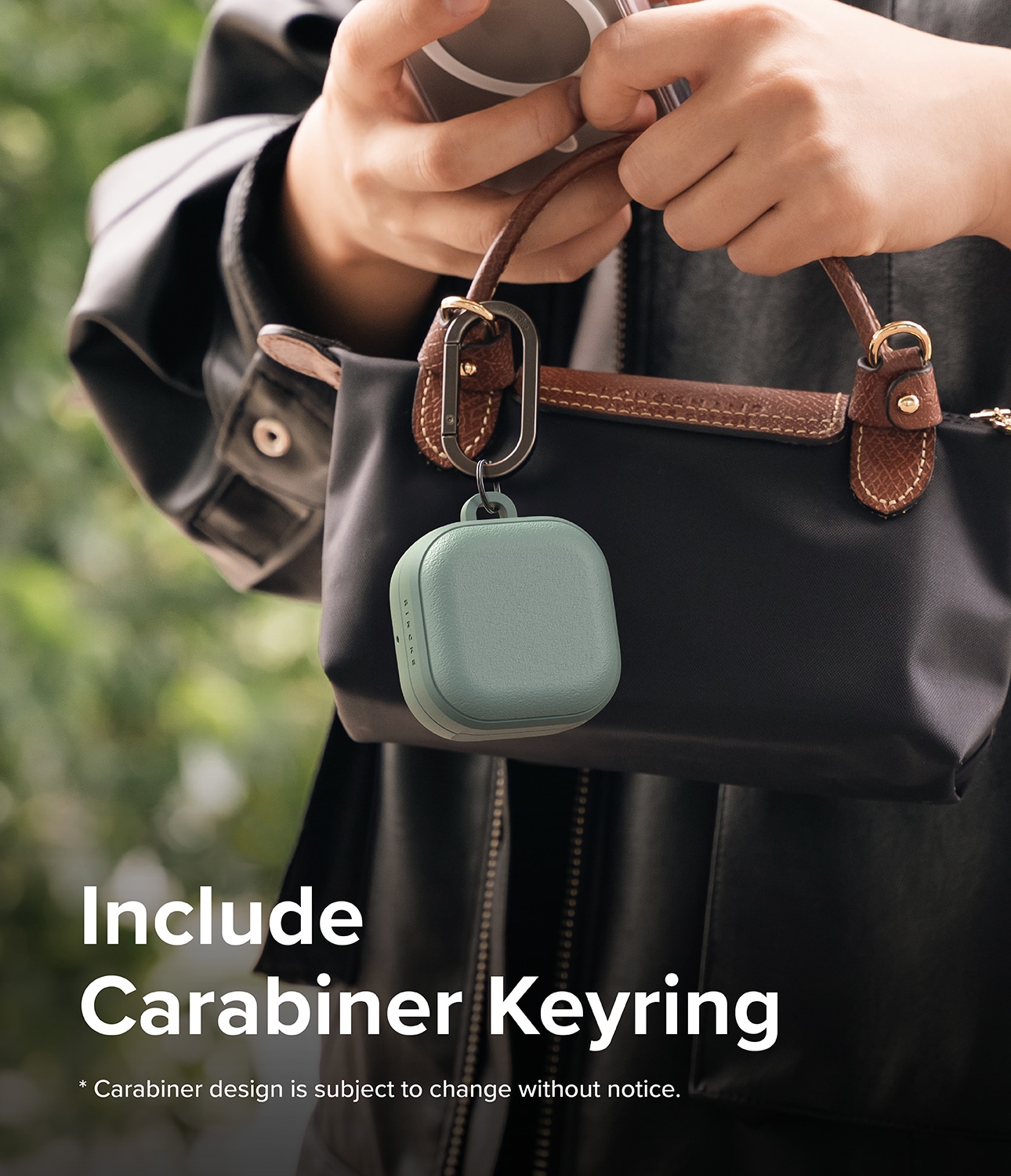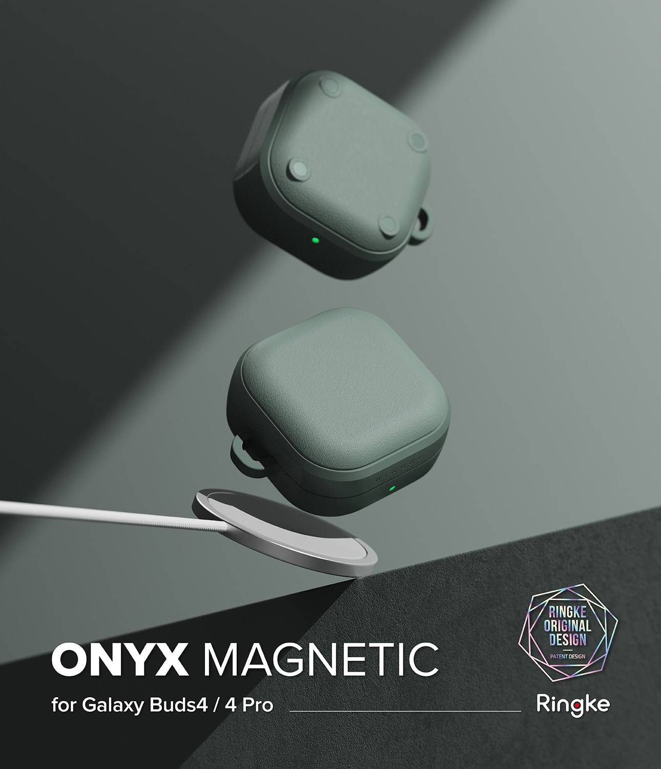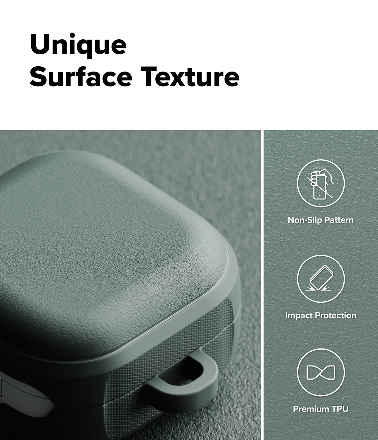 Robust cover med MagSafe og karabinhage til Samsung Galaxy Buds 4 fra Ringke. Coveret har et stilfuldt design og giver god beskyttelse mod stød. Det er fremstillet af fleksibelt og slidstærkt TPU med en unik mat, granulær tekstur, der både føles behagelig at holde og modvirker glidning og fingeraftryk.