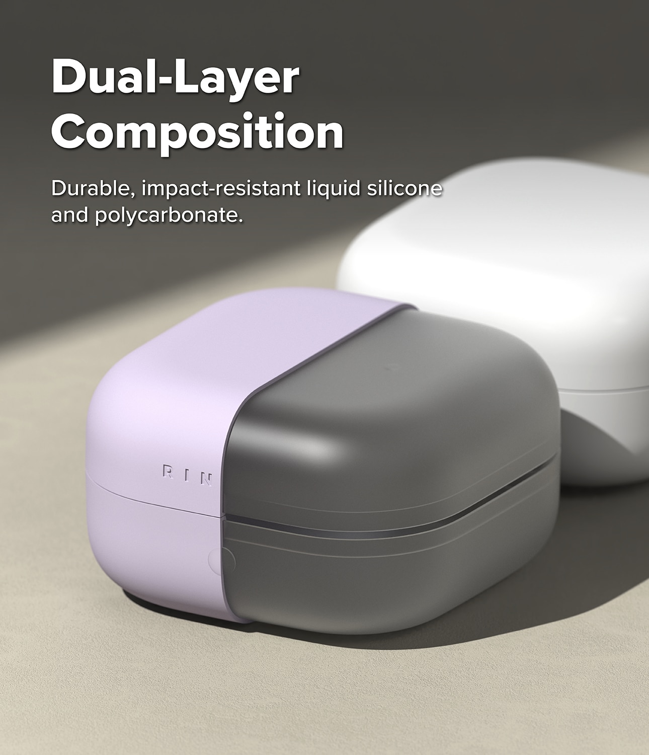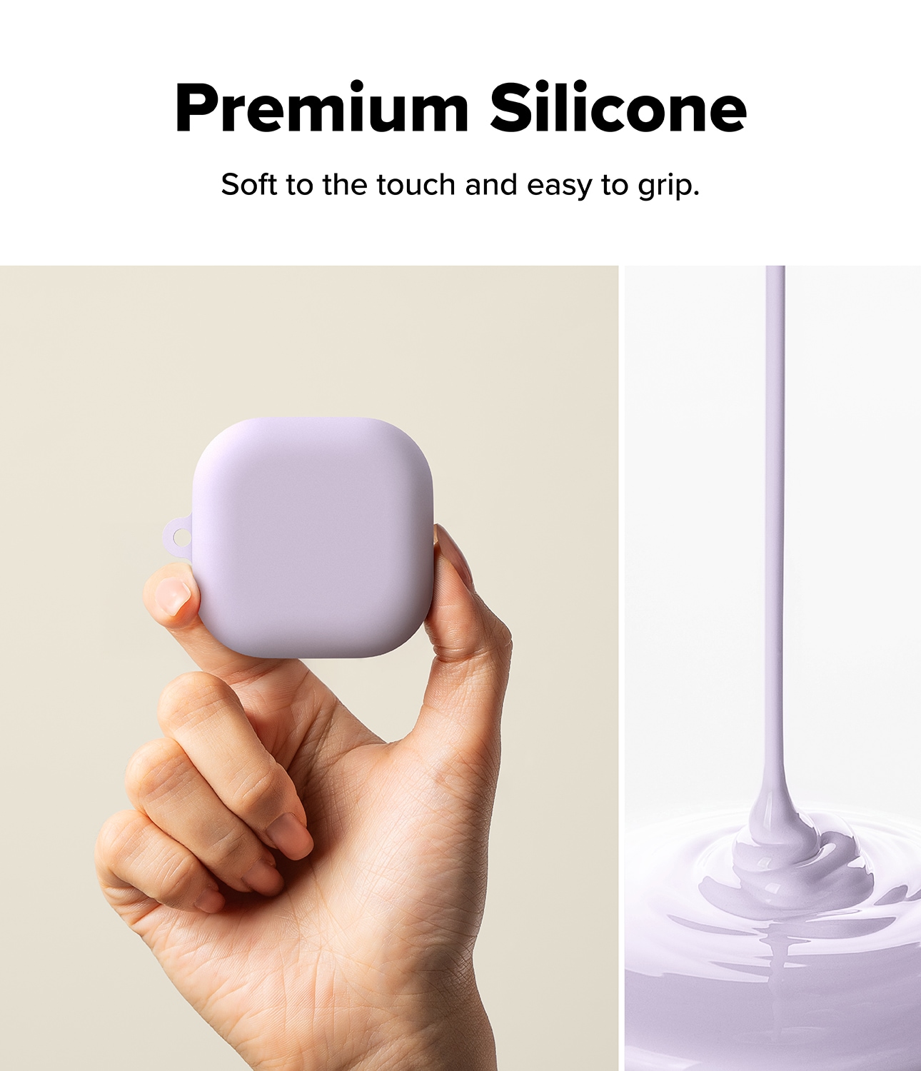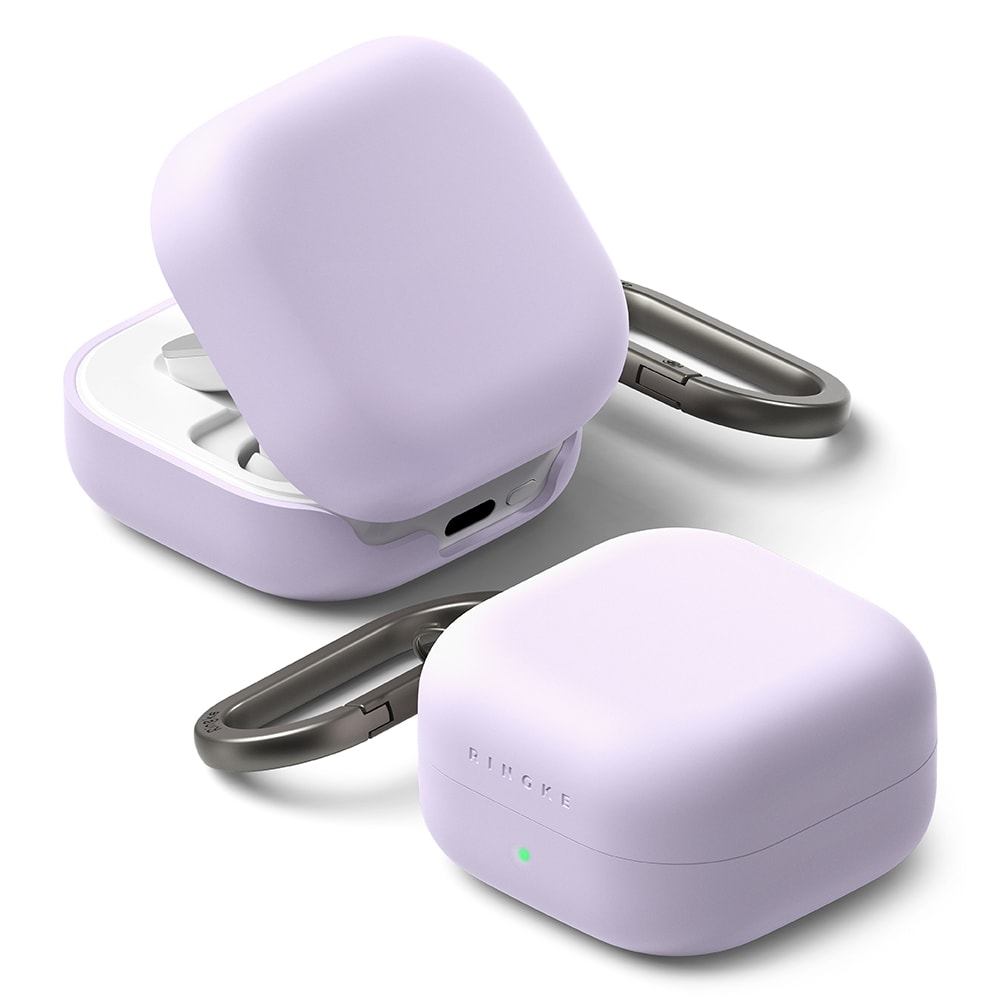 Stilrent silikonecover med karabinhage til Samsung Galaxy Buds 4 Pro fra Ringke. Coveret har et slankt design, men er stadig stødabsorberende for at beskytte mod skader. Det er lavet af silikone i høj kvalitet med en overflade, der både føles luksuriøs og giver god beskyttelse. Coveret har et to-lags design med en stærk polykarbonatramme indvendigt og silikone udvendigt.