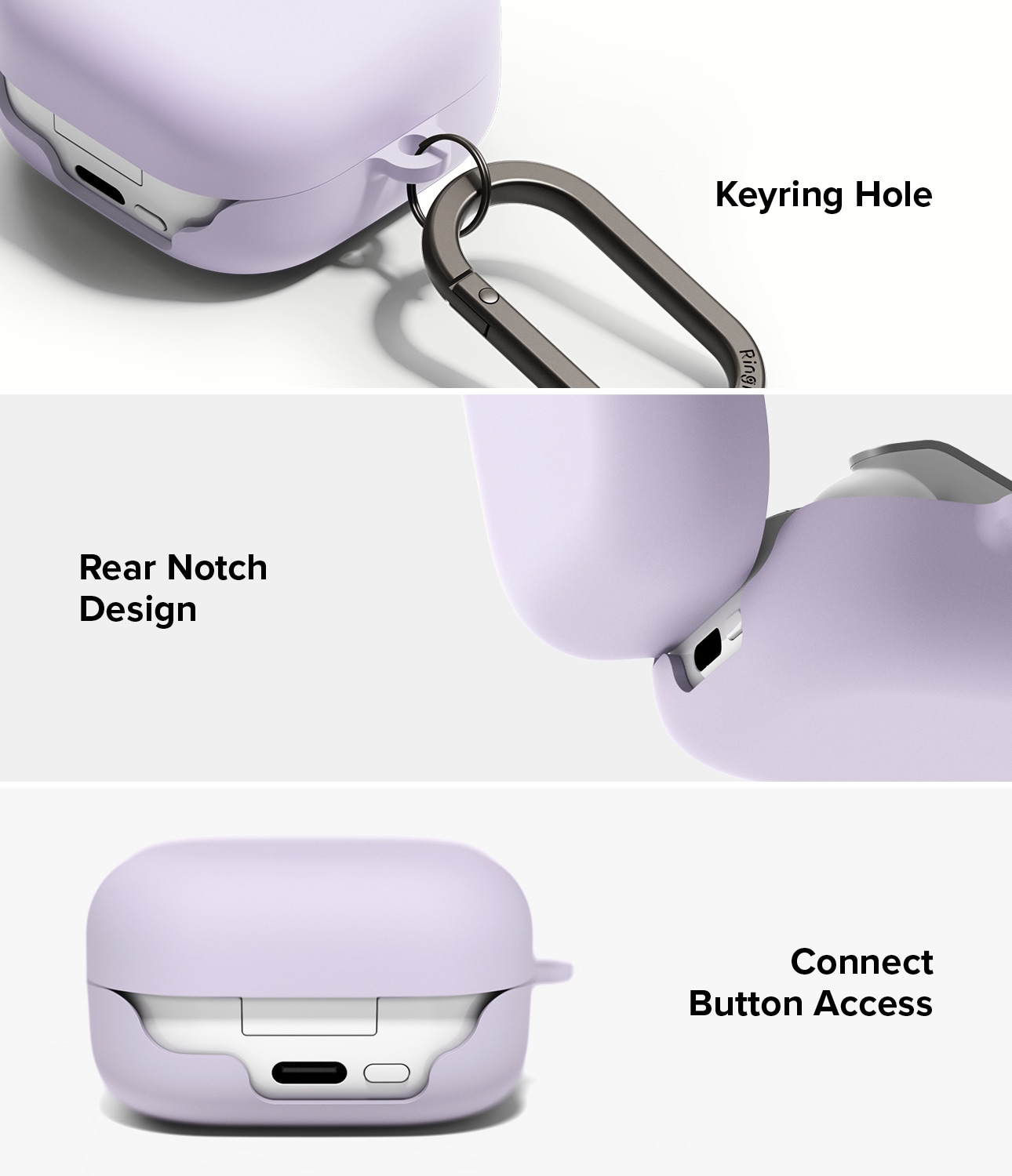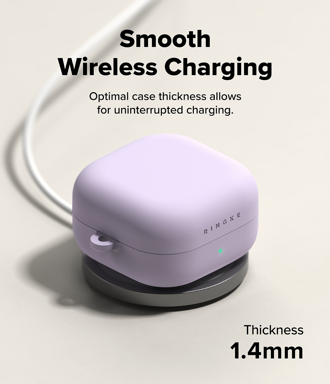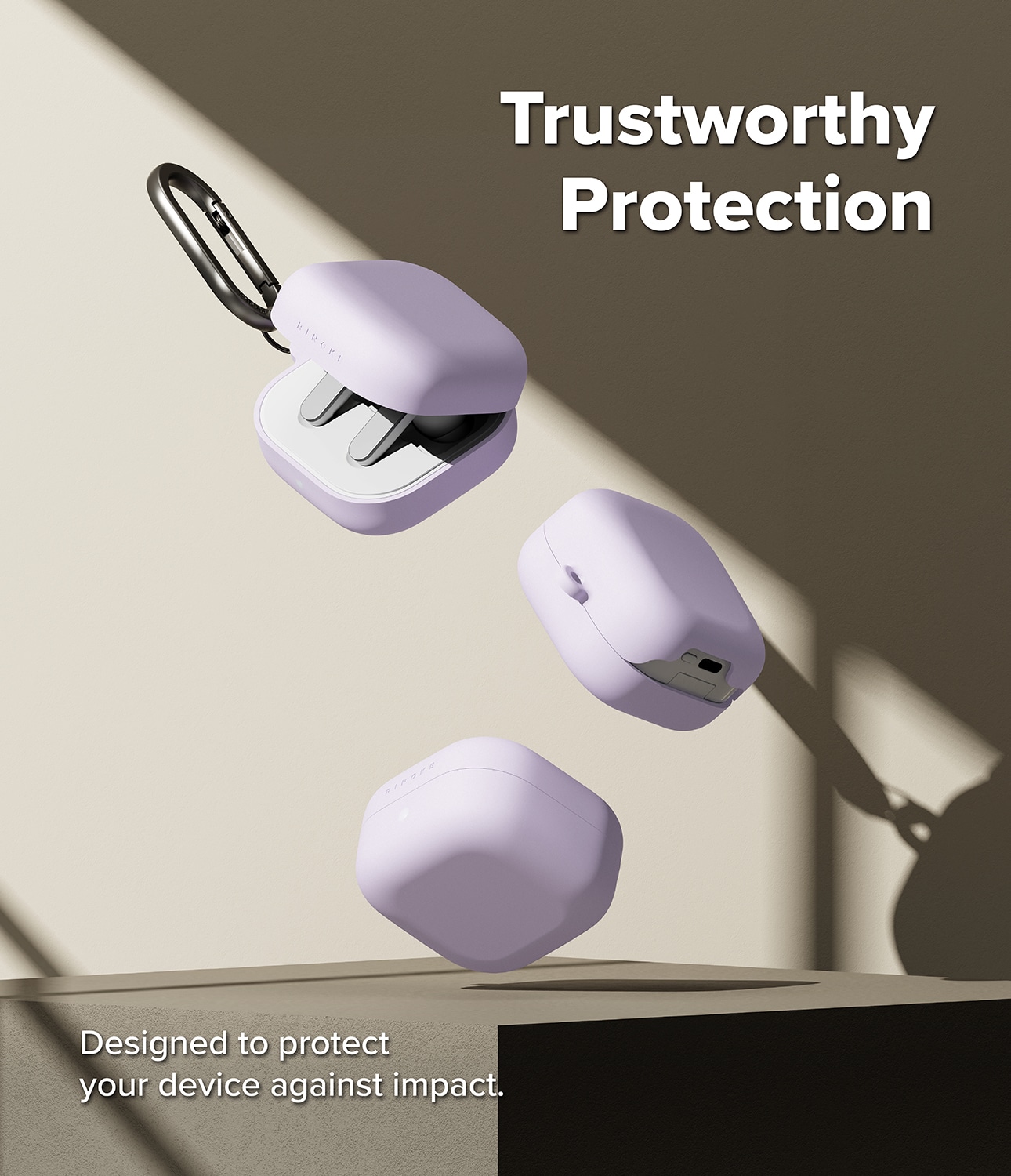 Stilrent silikonecover med karabinhage til Samsung Galaxy Buds 4 Pro fra Ringke. Coveret har et slankt design, men er stadig stødabsorberende for at beskytte mod skader. Det er lavet af silikone i høj kvalitet med en overflade, der både føles luksuriøs og giver god beskyttelse. Coveret har et to-lags design med en stærk polykarbonatramme indvendigt og silikone udvendigt.
