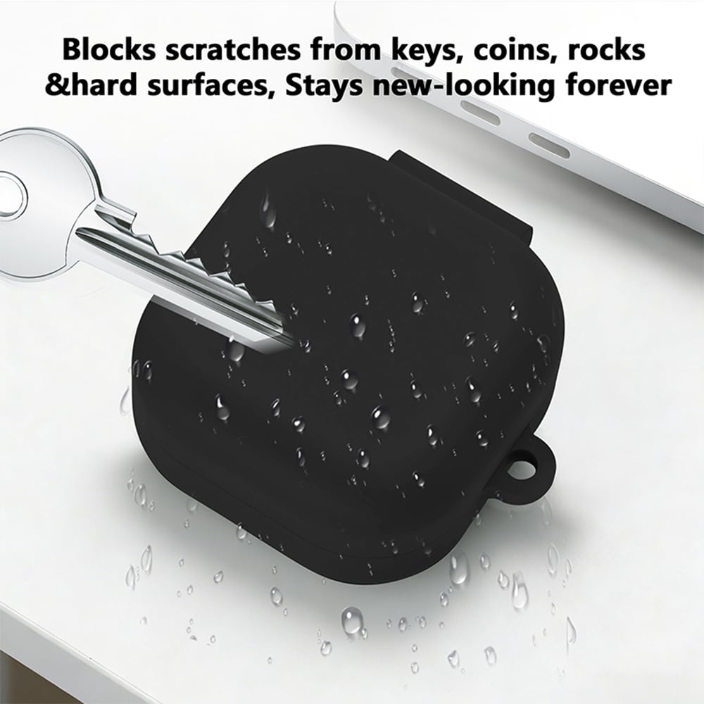 Beskyttende silikonecover til Samsung Galaxy Buds 4 Pro. Coveret er lavet af stødabsorberende silikone, som beskytter godt mod hverdagens ridser, slag og tab. Silikonen giver et godt greb og gør, at coveret ikke glider ud af hånden, lommen eller af bordet. Med den medfølgende karabinhage kan du nemt fastgøre dine høretelefoner til tasken, bæltet eller hvor det passer dig.