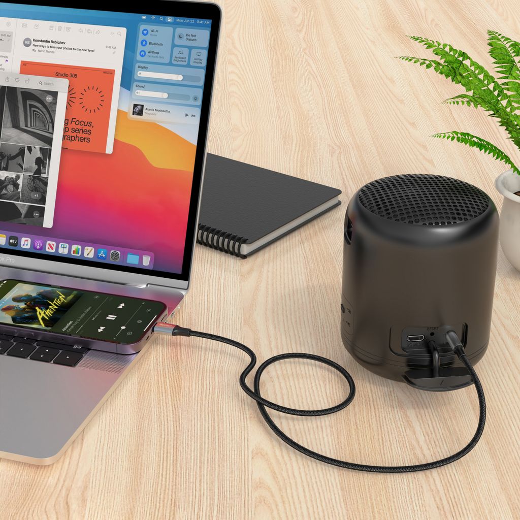 <p>- Lightning til 3,5 mm AUX adapter til stabil lydforbindelse<br />