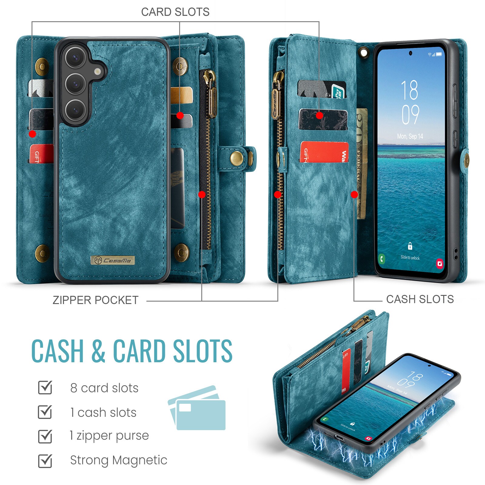 Mobiletui med magnetcover og tegnebog med ekstra mange kortrum fra CaseMe. Denne rummelige tegnebog har en seddellomme, lynlås til mønter og flere kortpladser.