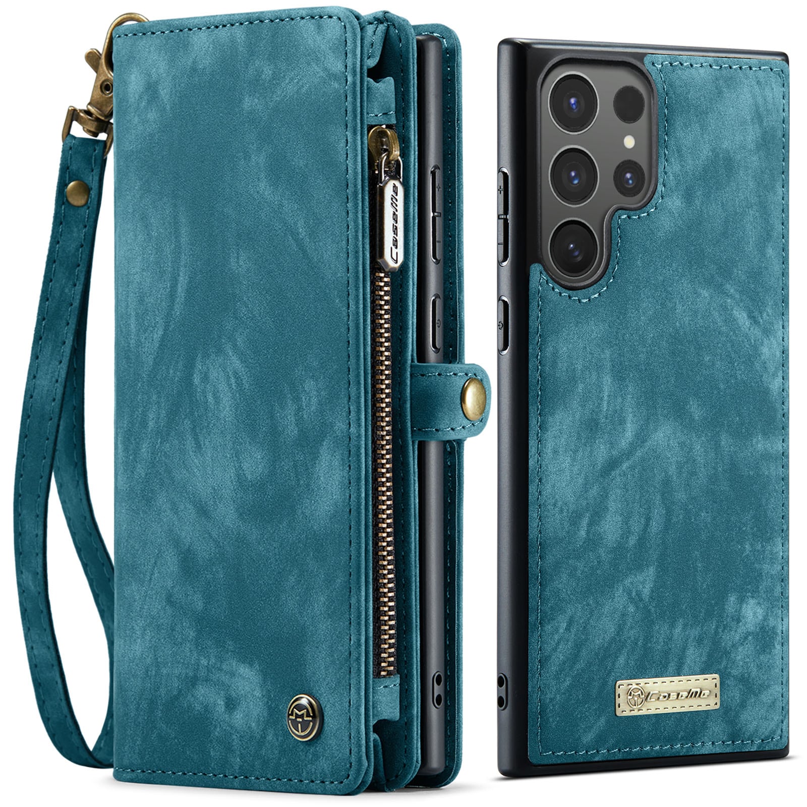 Mobiletui med magnetcover og tegnebog med ekstra mange kortrum fra CaseMe. Denne rummelige tegnebog har en seddellomme, lynlås til mønter og flere kortpladser.