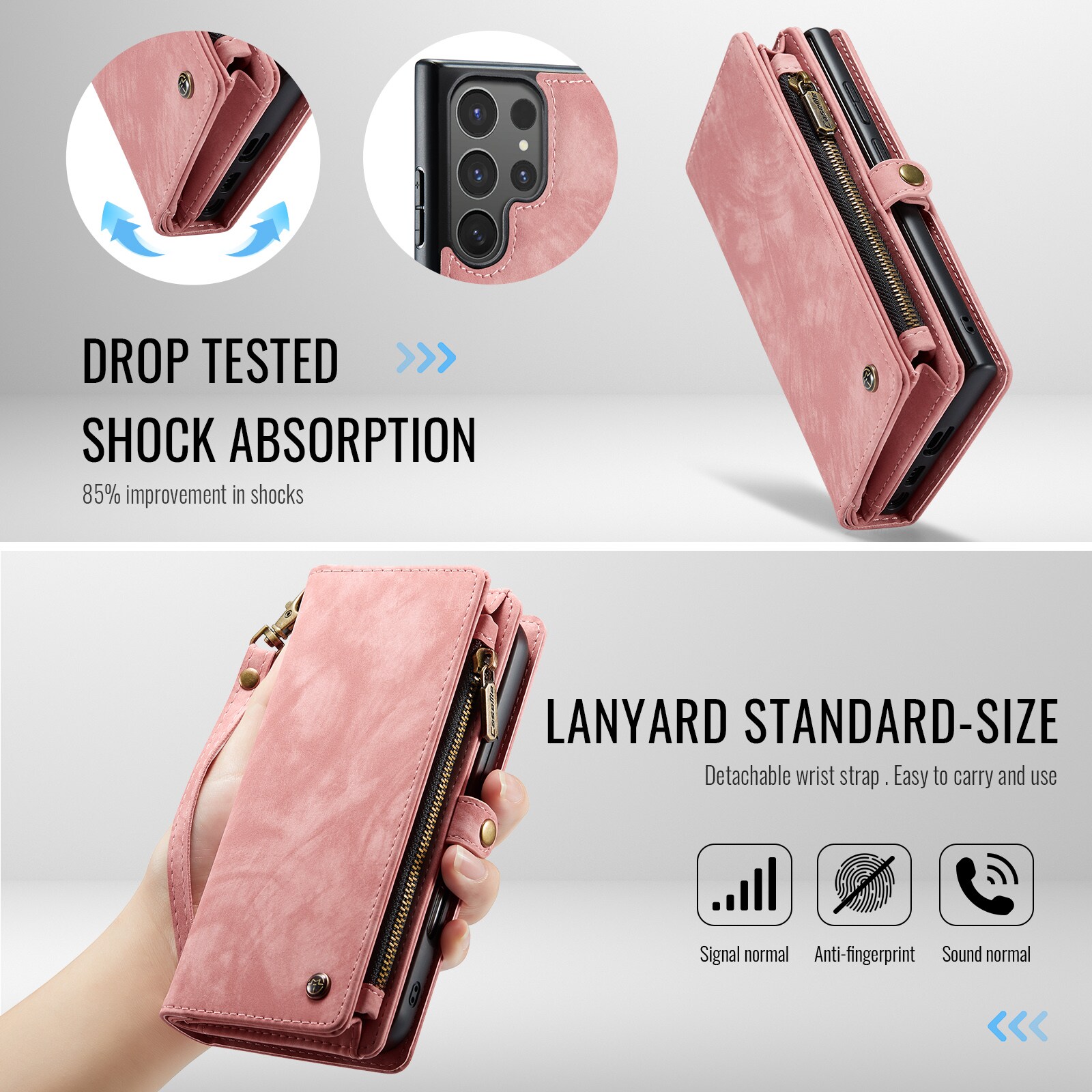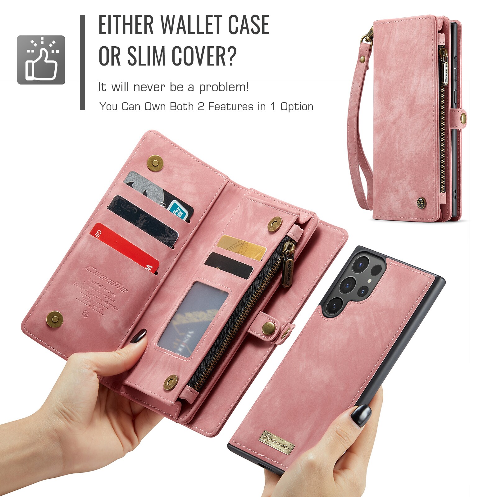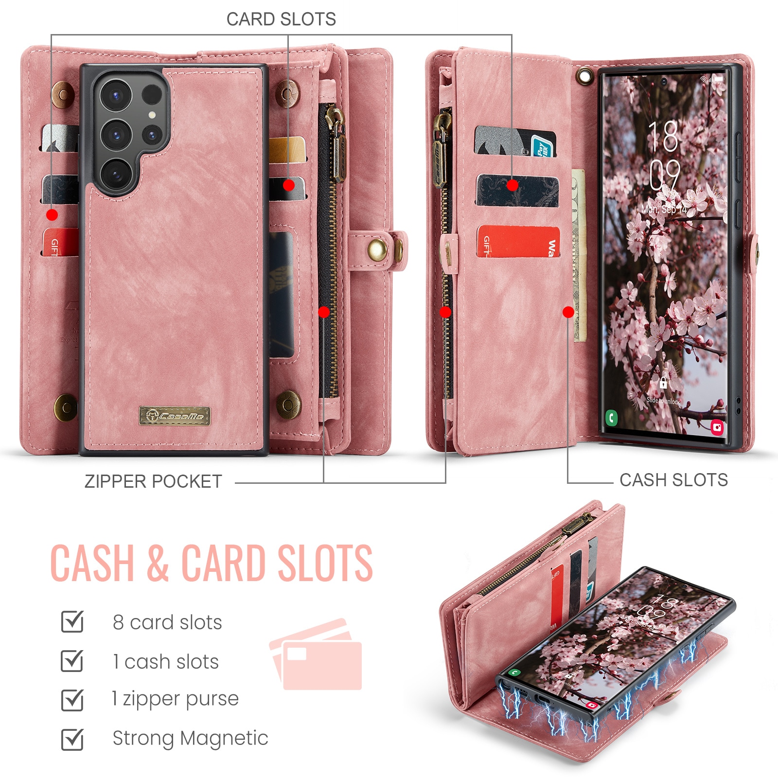 Mobiletui med magnetcover og tegnebog med ekstra mange kortrum fra CaseMe. Denne rummelige tegnebog har en seddellomme, lynlås til mønter og flere kortpladser.