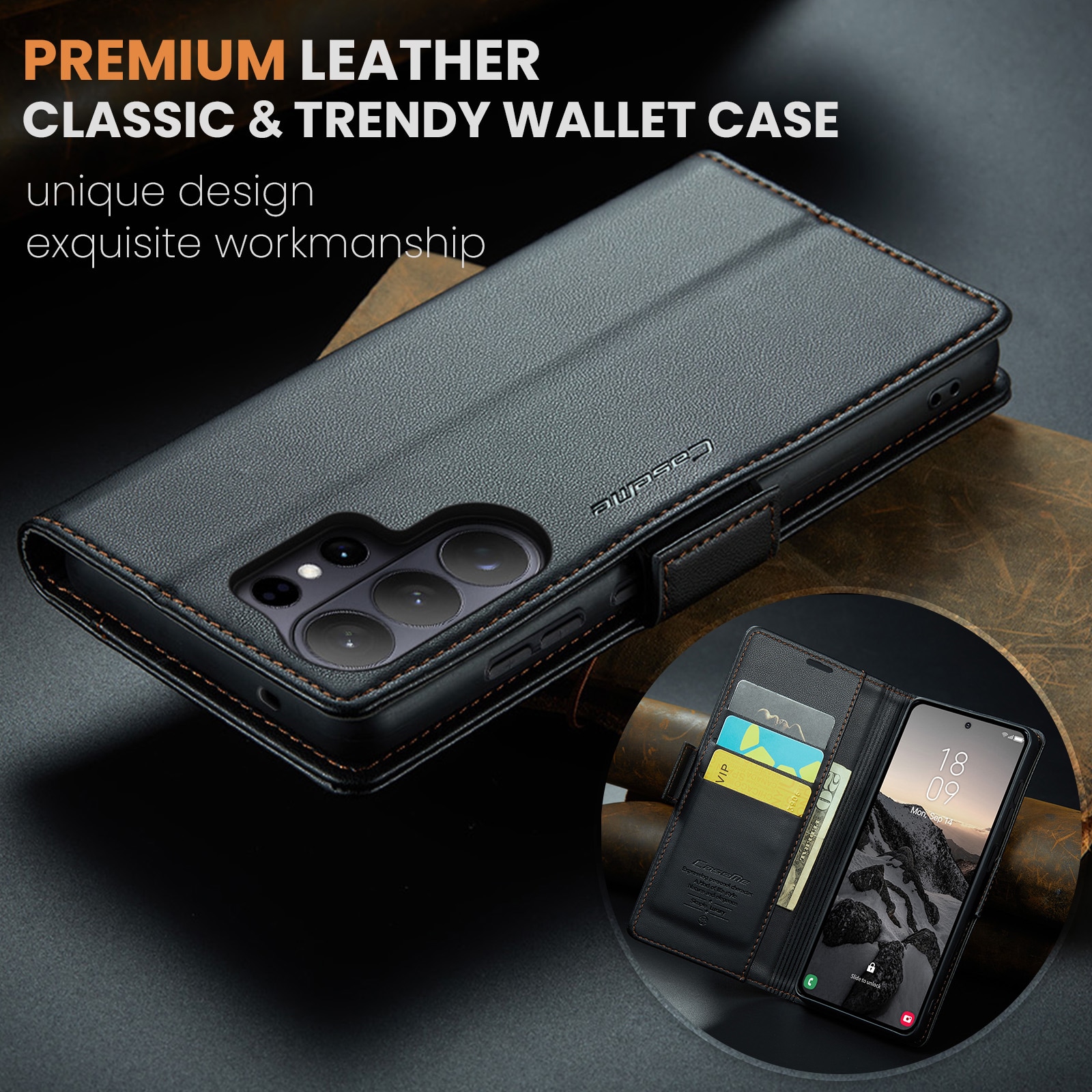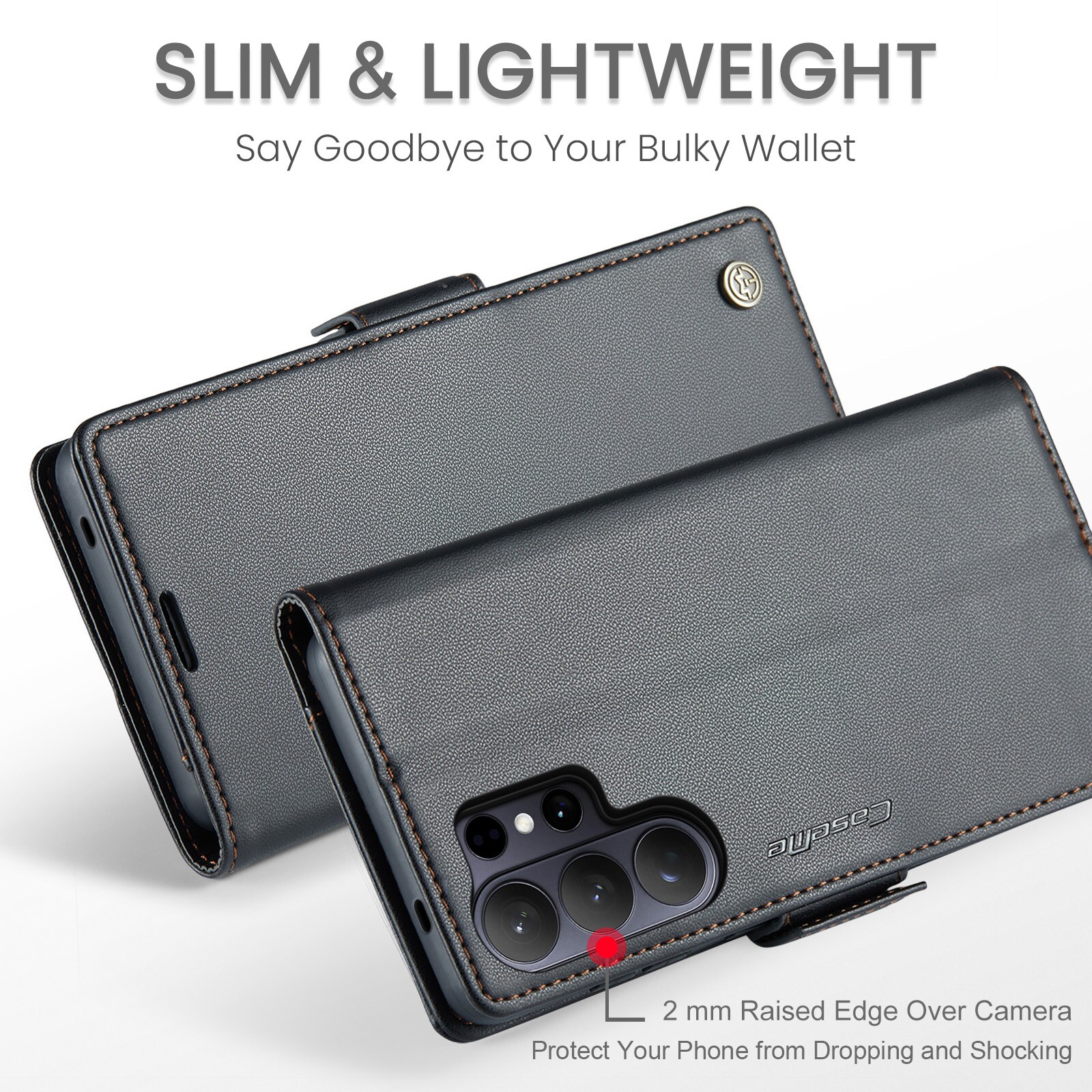 Slankt og praktisk pung-etui med RFID-beskyttelse fra CaseMe til Samsung Galaxy S26 Ultra. Etuiet beskytter effektivt hele telefonen uden at gå på kompromis med stilen. Låget holdes lukket med usynlige magneter, hvilket giver etuiet et slankt design, der ikke gør telefonen klodset. RFID-beskyttelsen giver dig tryghed for, at dine kort er sikkert opbevaret i pung-etuiet.