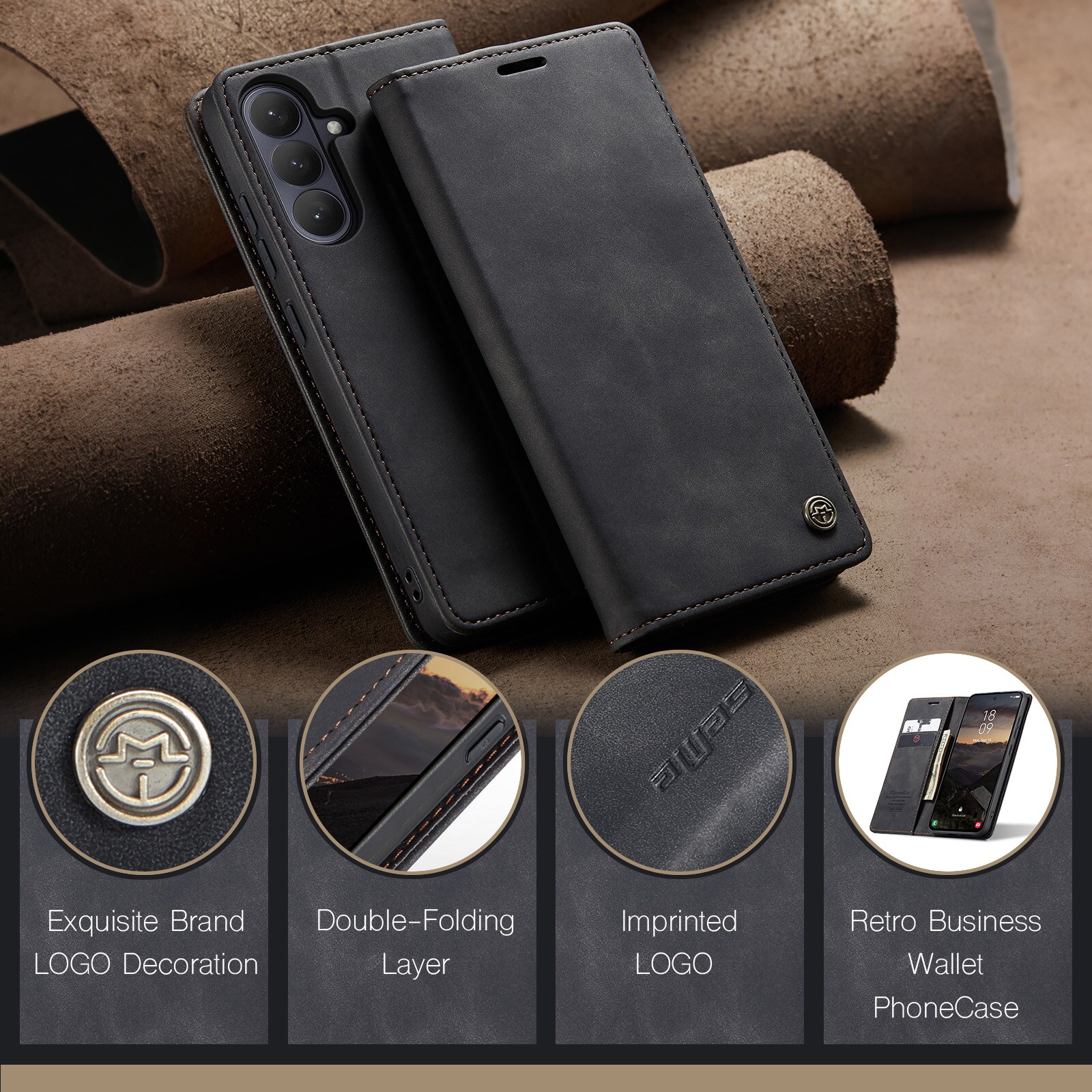 Slankt og praktisk pung-etui fra CaseMe til Samsung Galaxy S26. Etuiet beskytter effektivt hele telefonen uden at gå på kompromis med stilen. Låget holdes lukket med skjulte magneter, hvilket giver etuiet et tyndt design, der ikke gør telefonen klodset.