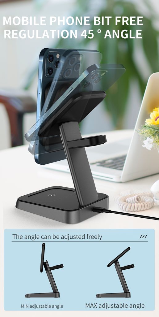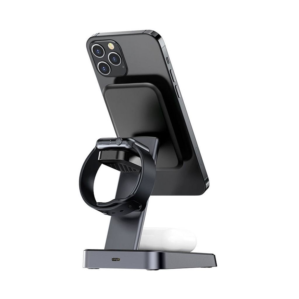 Ladestationen understøtter trådløs hurtigopladning op til 15W for smartphones samt dedikerede opladningsområder til høretelefoner og smartwatches. Den kan bruges både vertikalt og horisontalt, så du nemt kan bruge telefonen under opladning. Indbyggede sikkerhedsfunktioner beskytter mod overopladning, overspænding, o... Læs mere