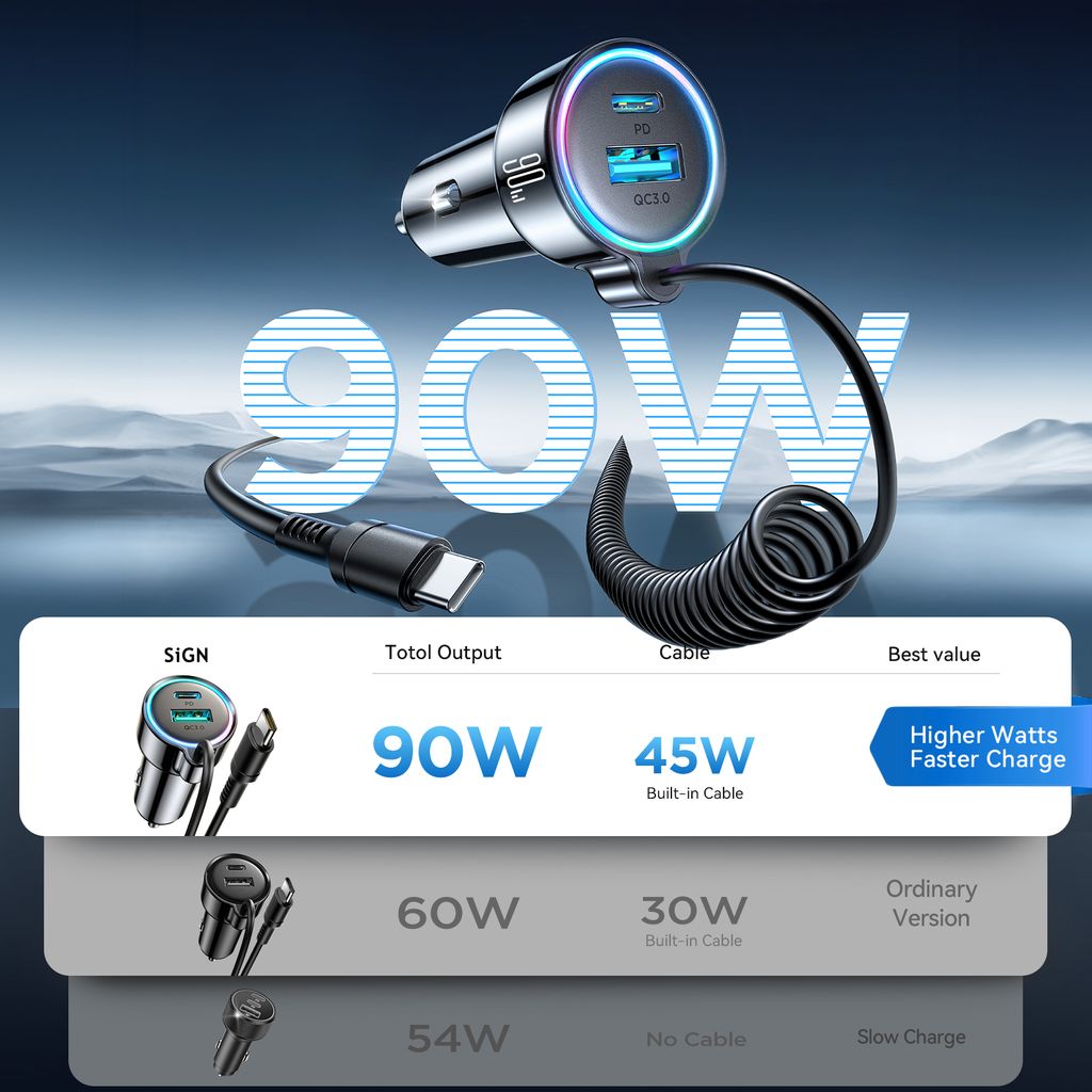 <p>- 90W total effekt til kraftfuld opladning i bilen<br />