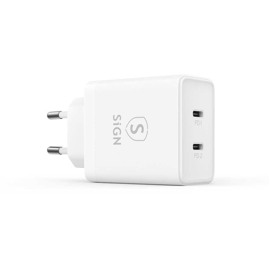 SiGN Dual USB-C PD Oplader 40W er en kraftfuld og kompakt vægoplader med dobbelte USB-C-porte til hurtig og effektiv opladning af dine enheder. Med støtte for Power Delivery og hurtigopladning kan du oplade to enheder samtidig – perfekt til mobiltelefoner, tablets, høretelefoner og andre USB-C-enheder.