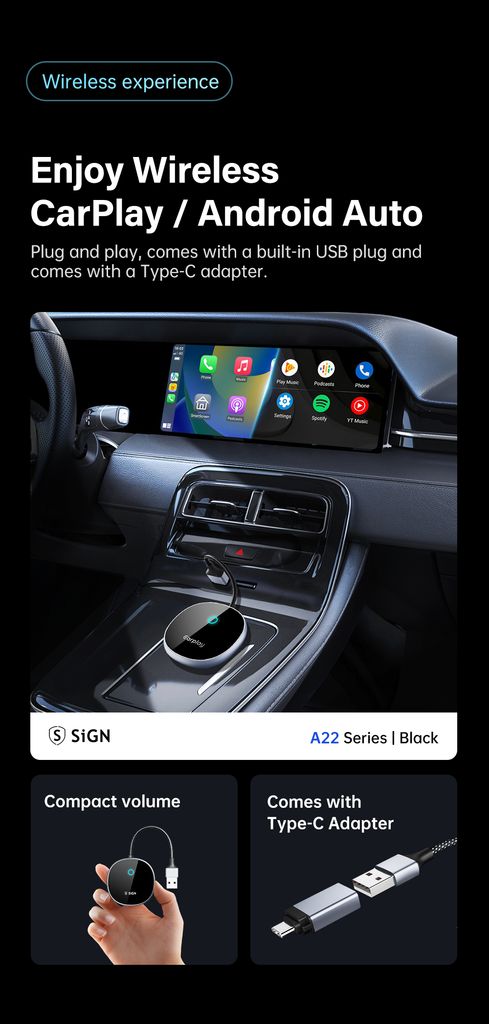 <p>- Omdanner kablet CarPlay til trådløs forbindelse<br />