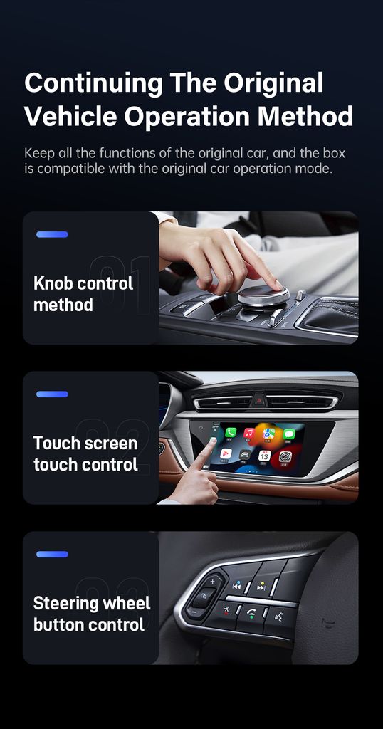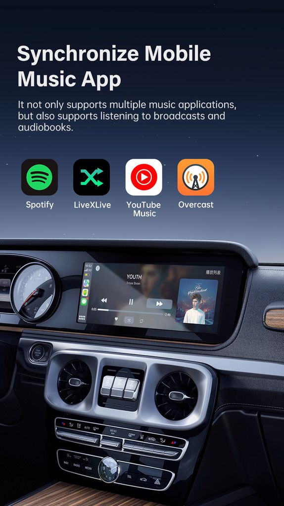 - Kompatible biler: Originalbiler med kablet CarPlay<br />