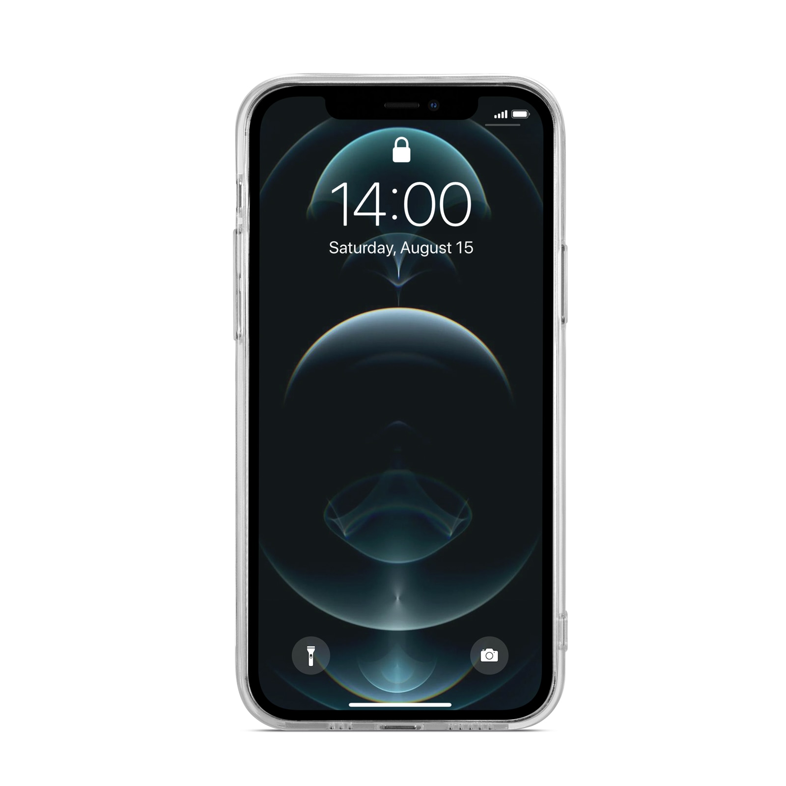Støddæmpende TPU-cover til Apple iPhone 12, iPhone 12 Pro fra Mobique. Beskytter din telefon mod stød og fald i hverdagen. Coveret er lavet af blød og fleksibel TPU, der er formstøbt til din telefon og giver pålidelig beskyttelse uden at gøre den klodset. Det gennemsigtige materiale fremhæver telefonens originale design og farve.