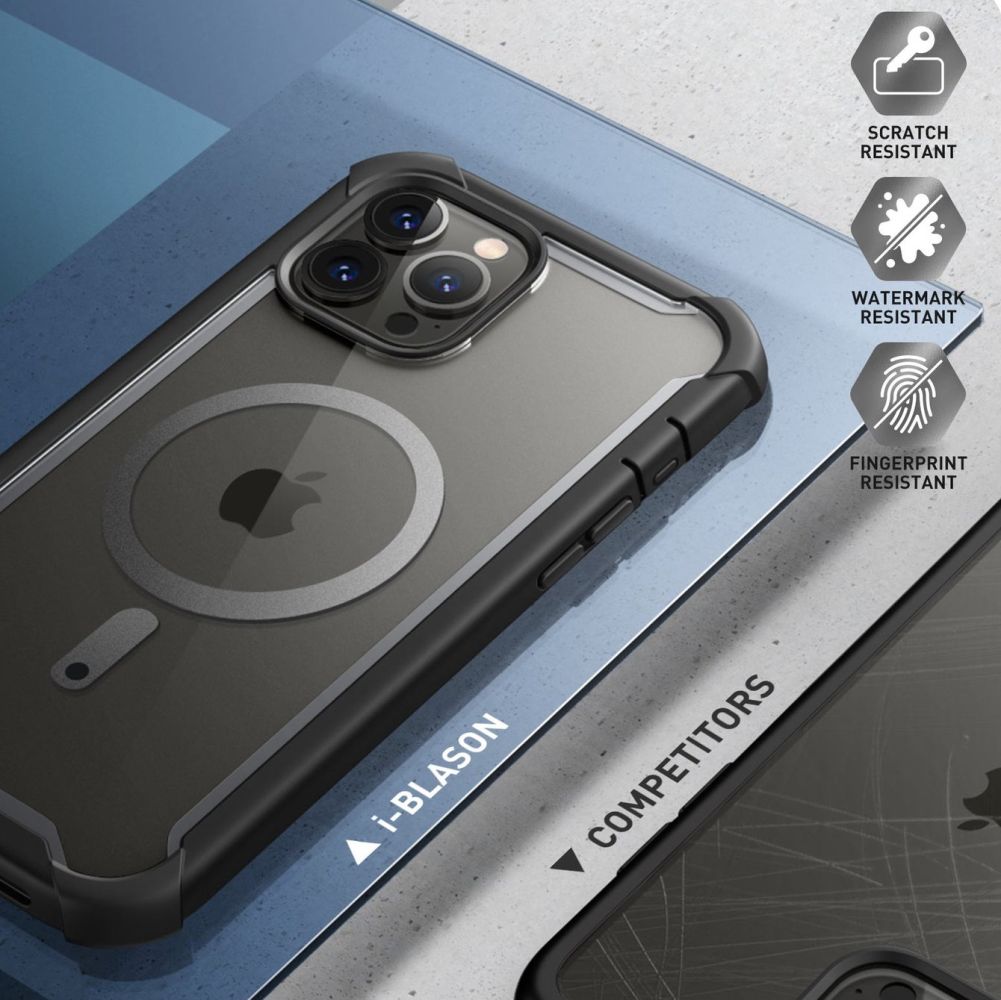 Heldækkende cover med gennemsigtig bagside og stødabsorberende kanter fra SUPCASE i-Blason. Coveret består af en bagside i polykarbonat med kanter i stødabsorberende TPU og en forside i polykarbonat.