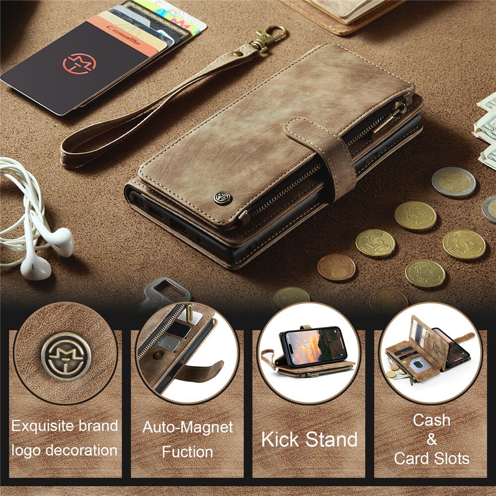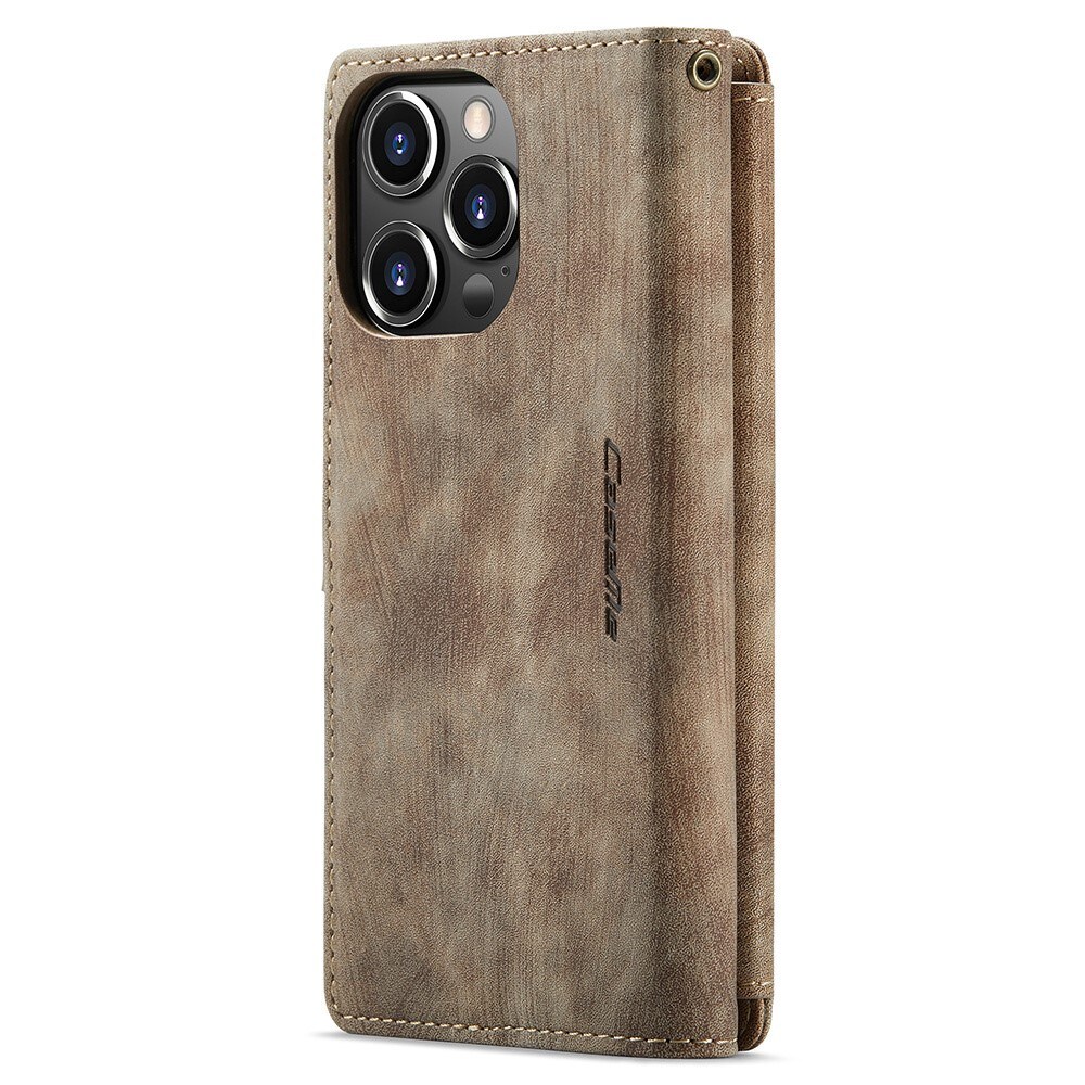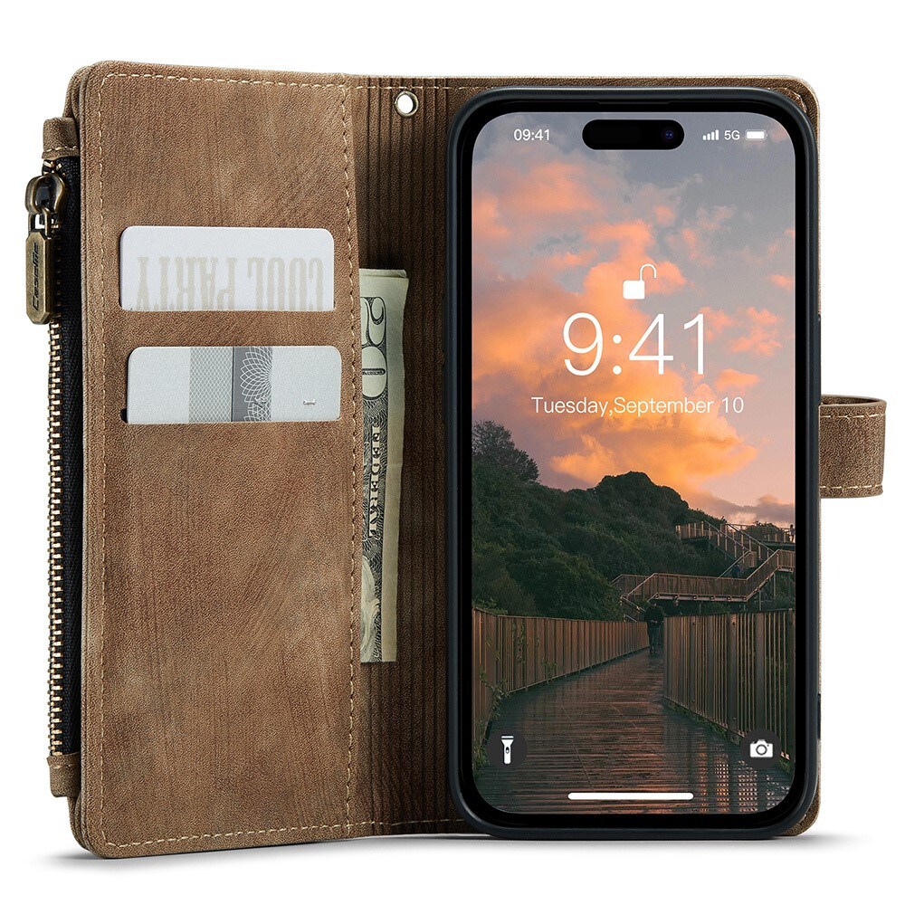 Mobiletui med ekstra rummelig pung og mange kortholdere til Apple iPhone 15 Pro fra CaseMe. Pungen har 7 kortlommer, et seddelrum og et rummeligt møntrum med lynlås.