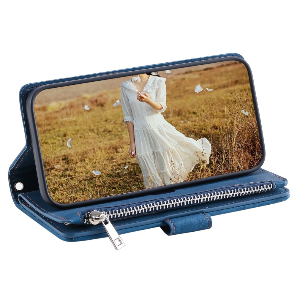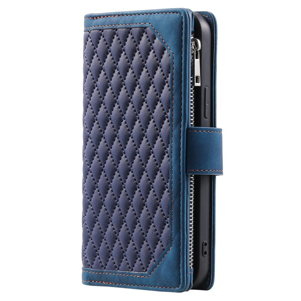 Multifunktionelt mobilcover til Apple iPhone 15 med et flot quiltet ydre. Coveret er lavet af kunstlæder og har et indvendigt TPU-skal, der absorberer stød og giver god beskyttelse til din telefon.