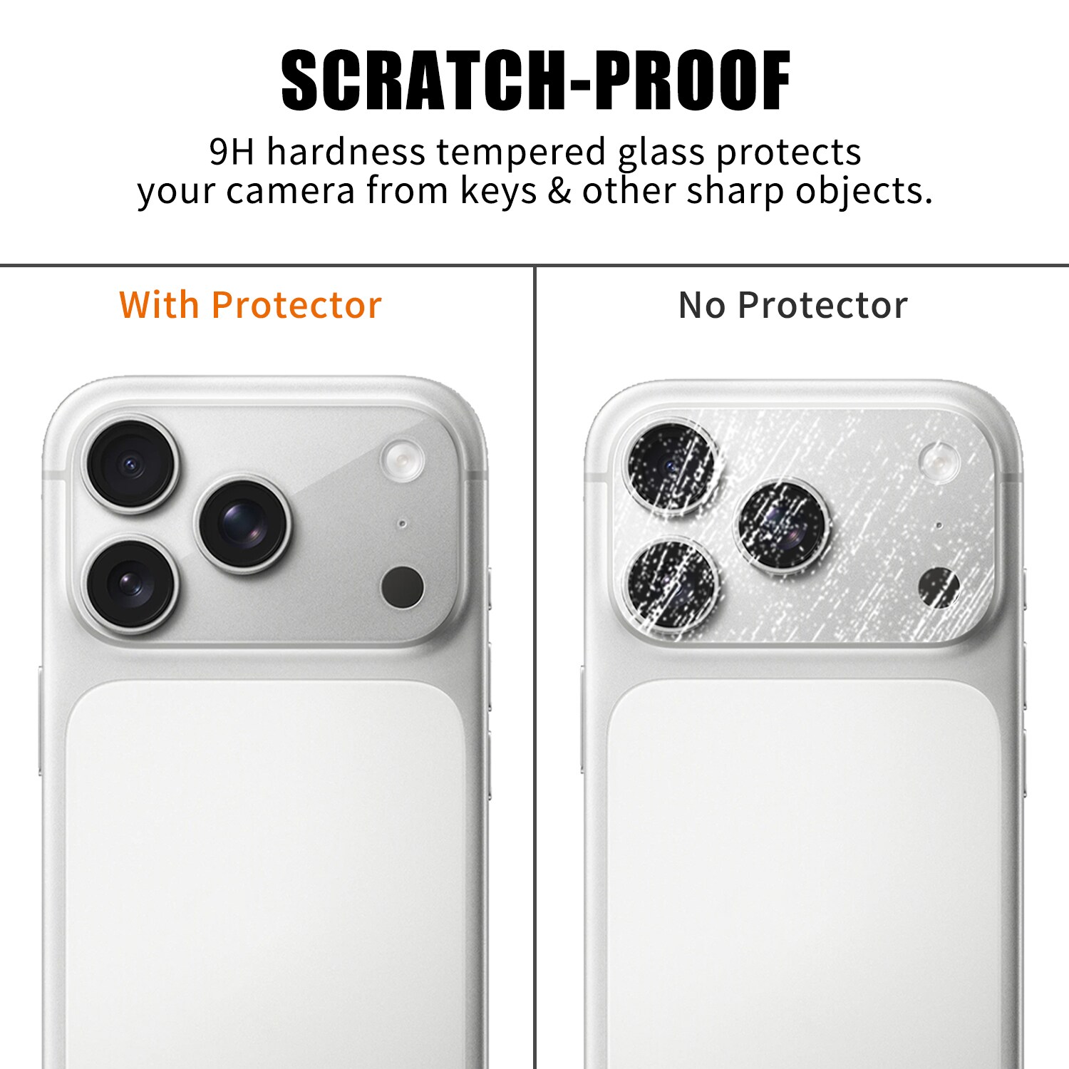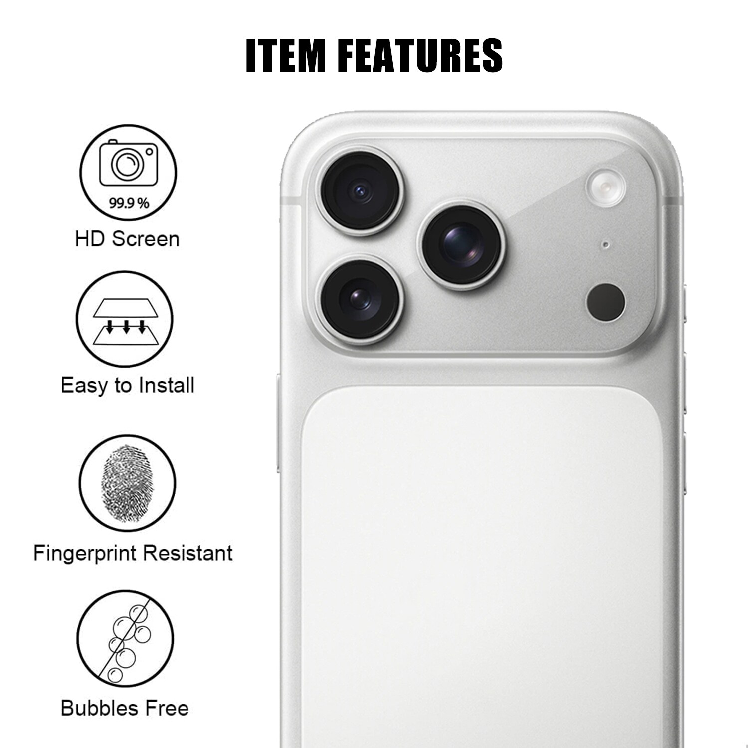 Kameralinsebeskytter i hærdet glas til Apple iPhone 17 Pro Max, udviklet til at beskytte kameramodulet mod ridser, stød og ydre slitage. Beskytteren er fulddækkende og dækker både linser og kamerahus. Når den er monteret, er beskytteren diskret og påvirker ikke telefonens udseende.