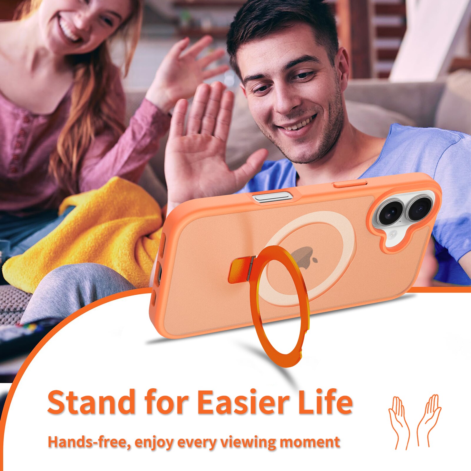 Mobilcover med udtrækkelig magnetisk ring til Apple iPhone 17. For optimal beskyttelse mod stød og tab har coveret et todelt design med en TPU-kerne og en ydre skal i hård plast. Ringen på bagsiden er magnetisk og kan bruges sammen med MagSafe-kompatibelt tilbehør såsom opladere og kortholdere. Ringen kan også fungere som et stativ til at se film, videoer eller spille spil.