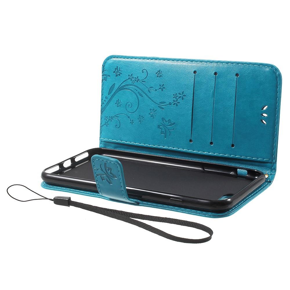 Mobiletui med sommerfugle og mønster præget i læderet. Tegnebogsetuiet har et flot design og beskytter hele telefonen, så du undgår skader, ridser og snavs.