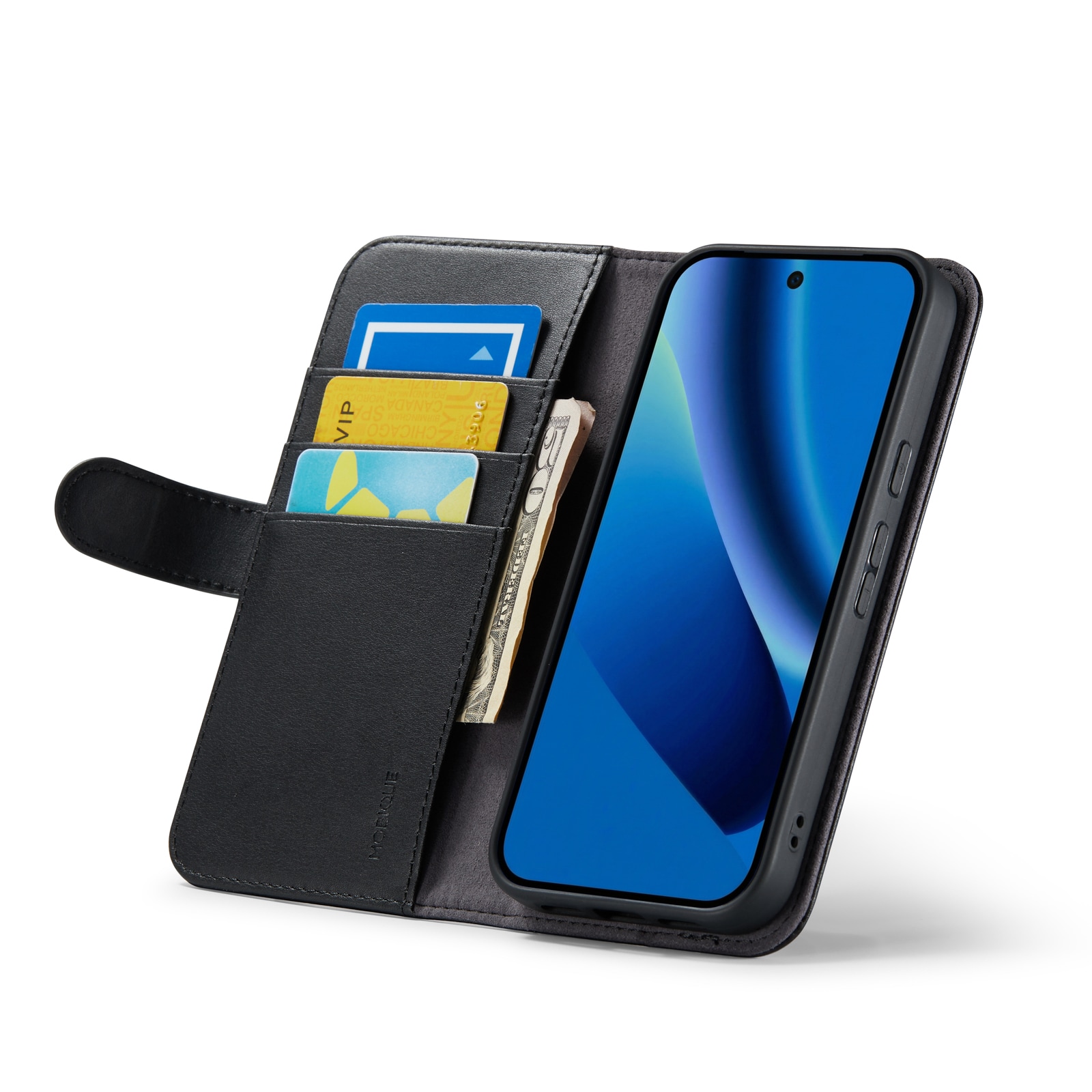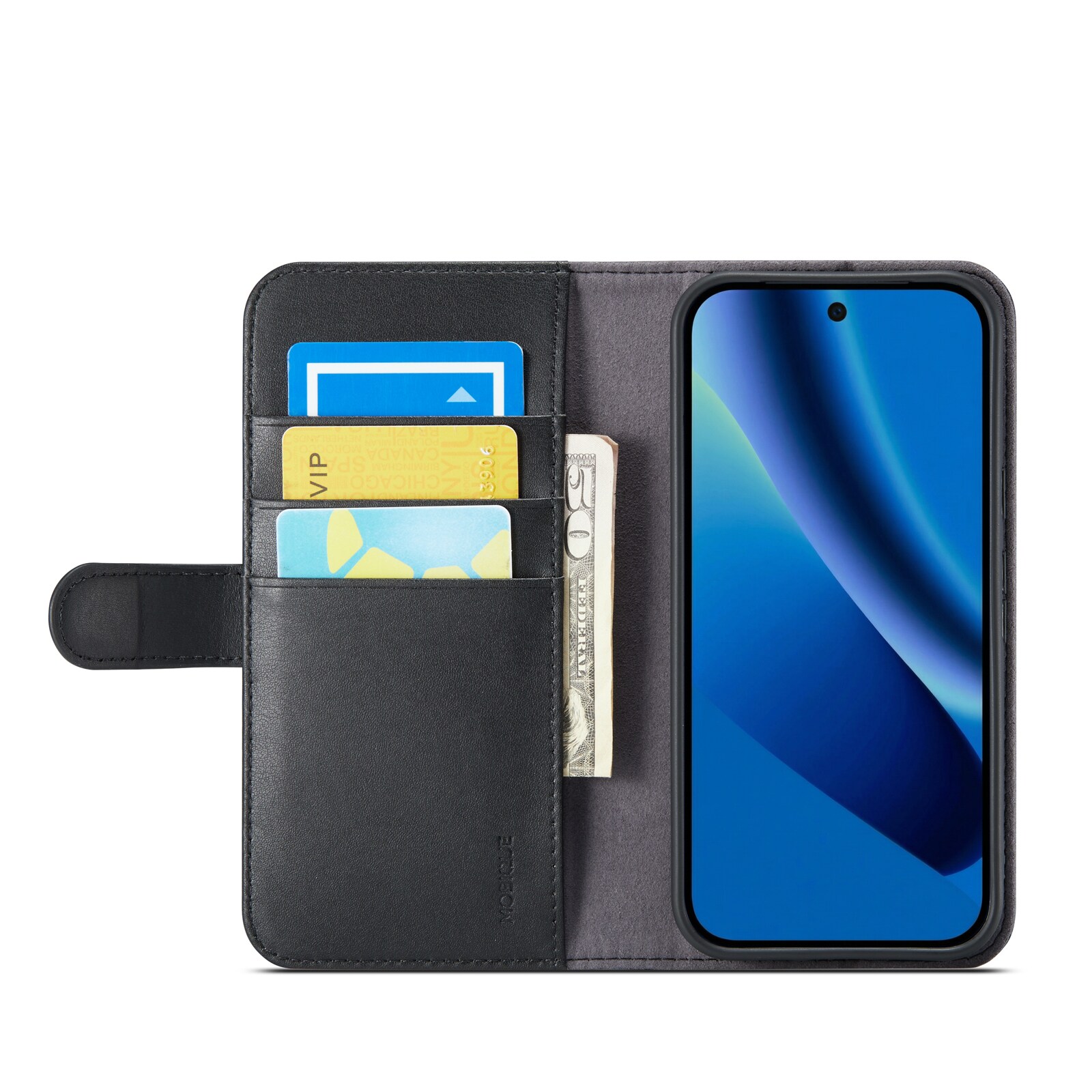 Smart og elegant mobiletui i ægte læder. Etuiet beskytter hele din telefon og har en tegnebog på indersiden af frontcoveret. Tegnebogen er rummelig med tre kortrum og en seddellomme.