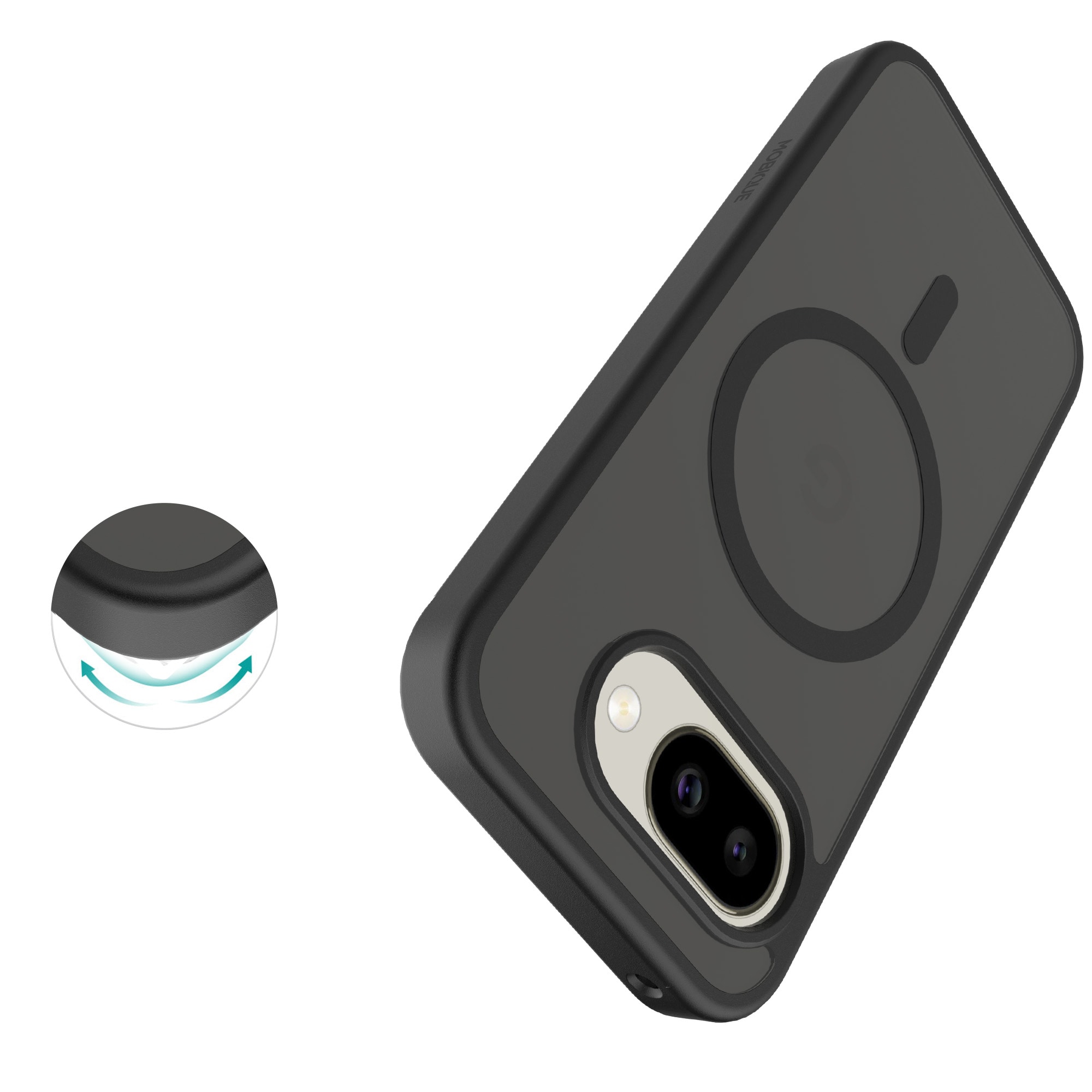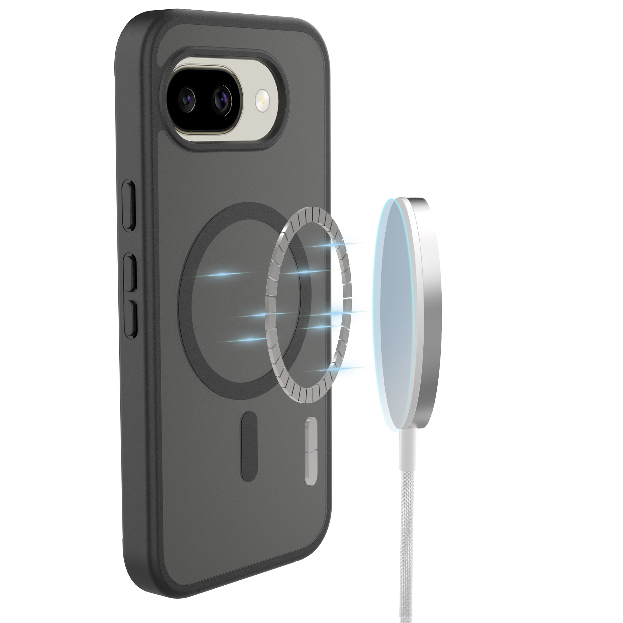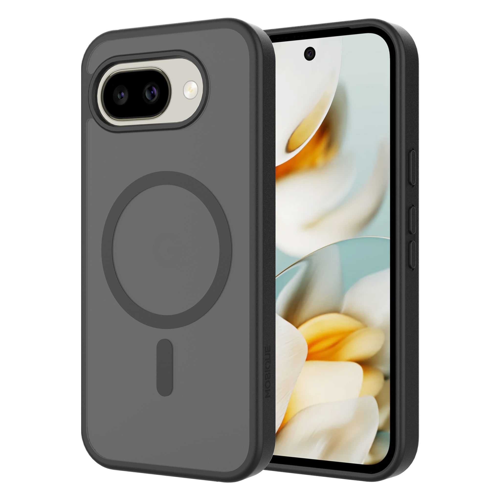 Hybridskal med magnetisk ring til Google Pixel 10a fra Mobique. Coveret har en stilfuld mat finish og er udstyret med en magnetisk ring på bagsiden. Ringen gør det nemt at bruge coveret sammen med MagSafe-kompatibelt tilbehør som opladere og kortholdere.