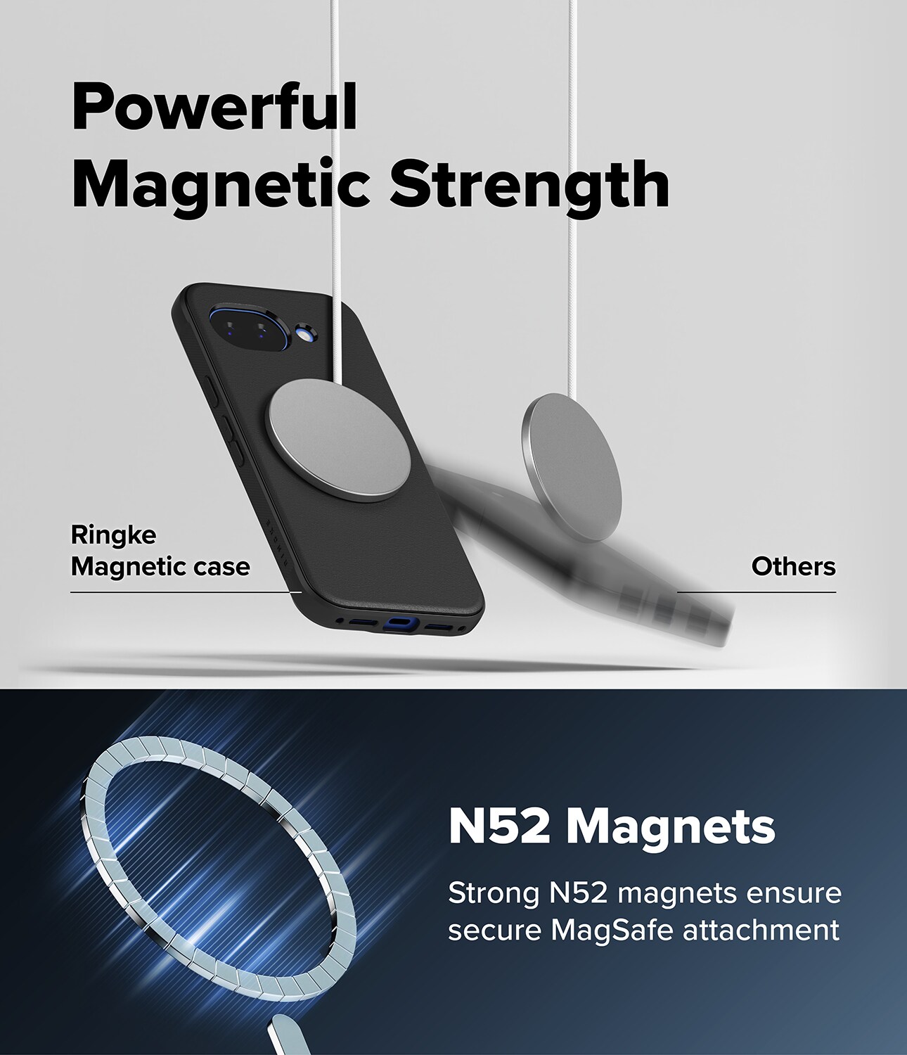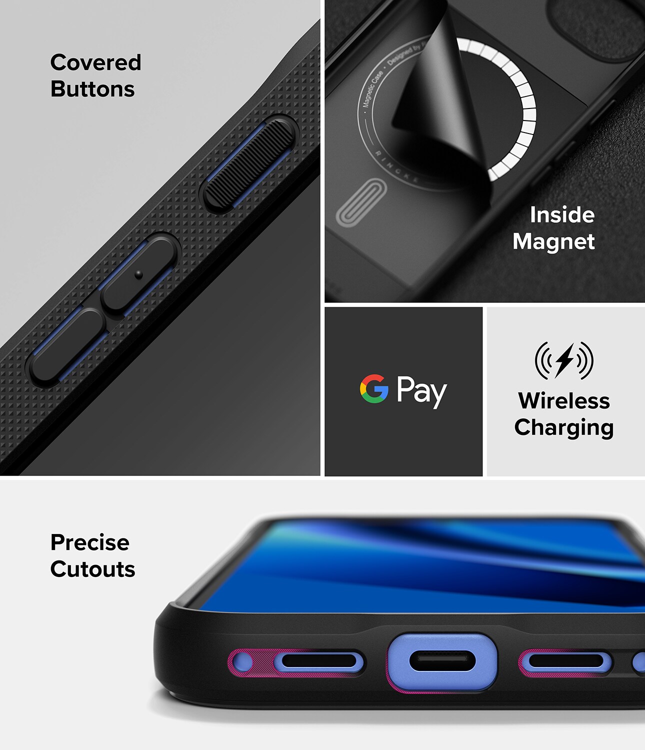 Onyx Magnetic er et robust cover fra Ringke til Google Pixel 10a med MagSafe. Et cover der kombinerer flot design med effektiv stødabsorbering. Det har forstærkede hjørner, hævede kanter og taktile knapper. Takket være MagSafe-støtten kan du bruge MagSafe-tilbehør og oplade trådløst uden at tage coveret af.