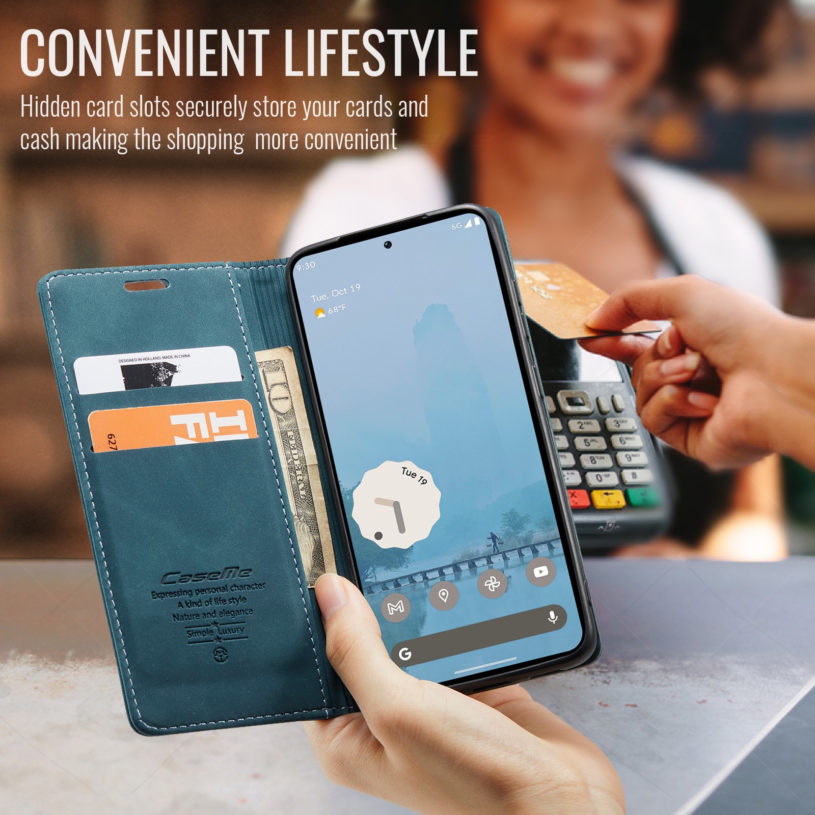 Slankt og praktisk pung-etui fra CaseMe til Google Pixel 10a. Etuiet beskytter effektivt hele telefonen uden at gå på kompromis med stilen. Låget holdes lukket med skjulte magneter, hvilket giver etuiet et tyndt design, der ikke gør telefonen klodset.