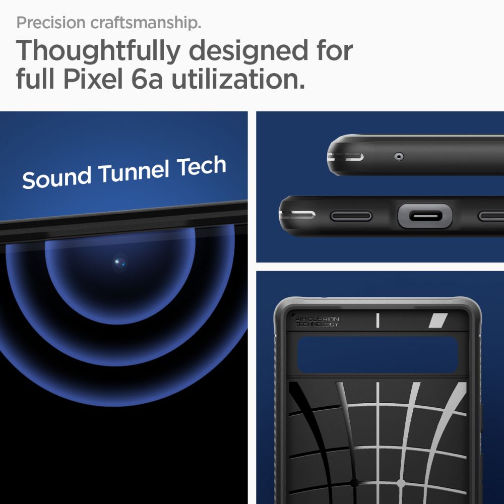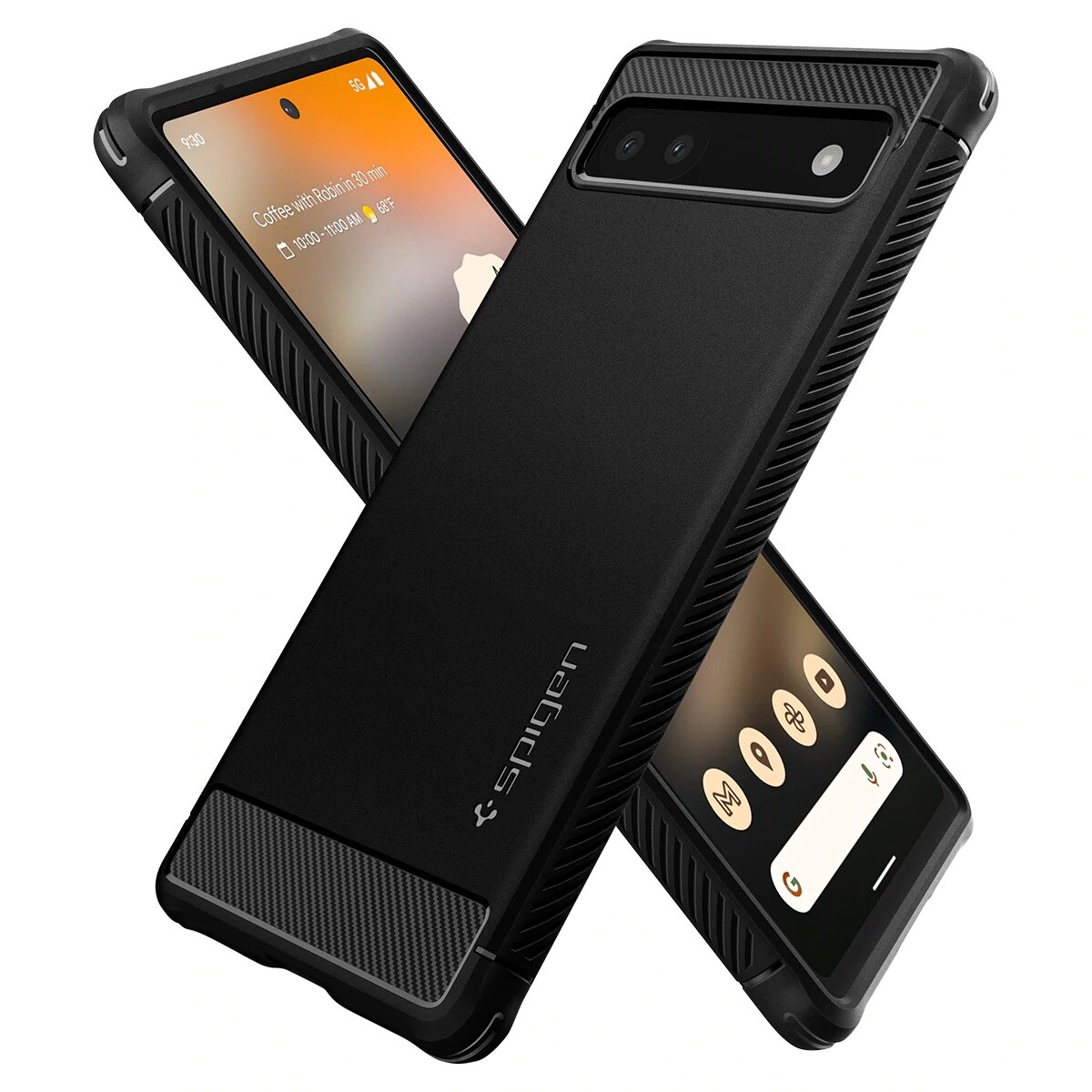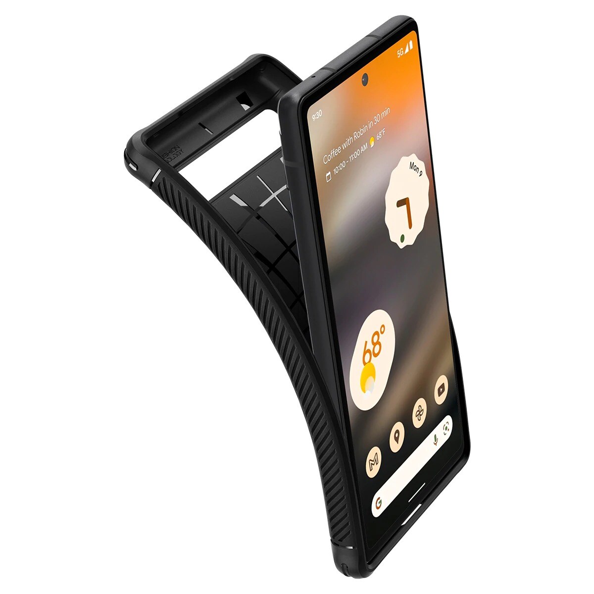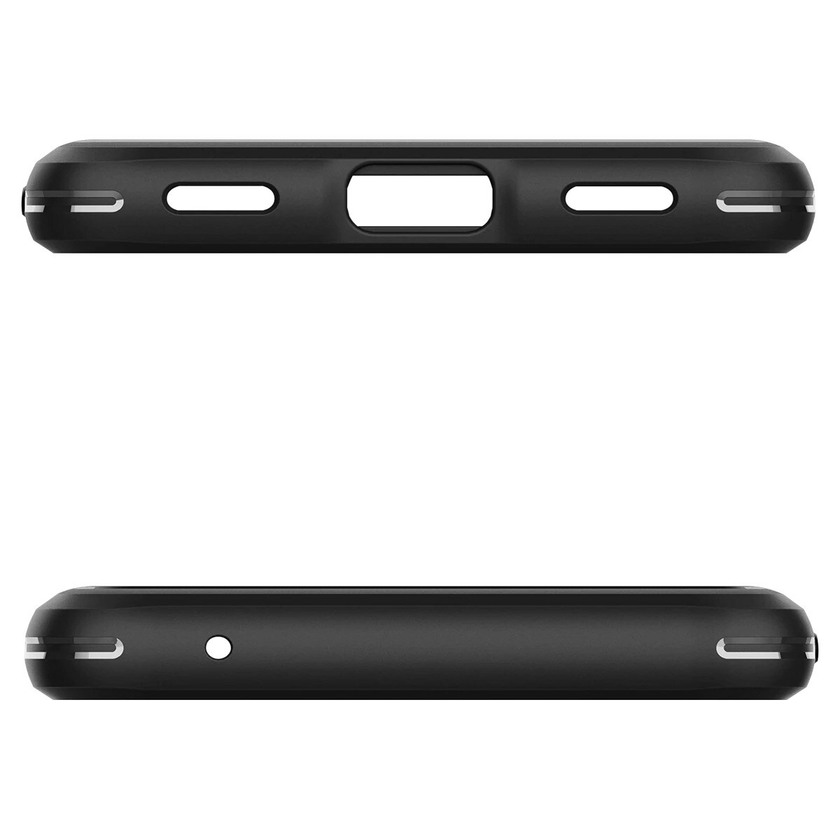 Spigen Rugged Armor er et populært cover med et flot design og god stødabsorbering, der forhindrer skader på telefonen. Coverets hjørner er forstærket med Spigens patenterede Air Cushion Technology og har forhøjede kanter omkring skærm og kamera, hvilket mindsker risikoen for ridser.