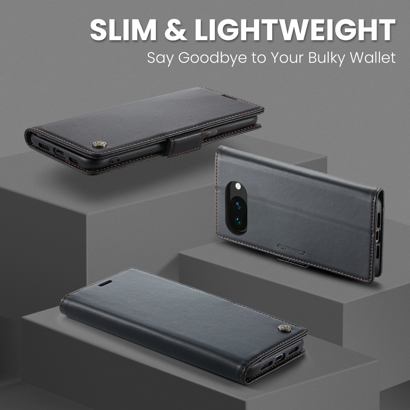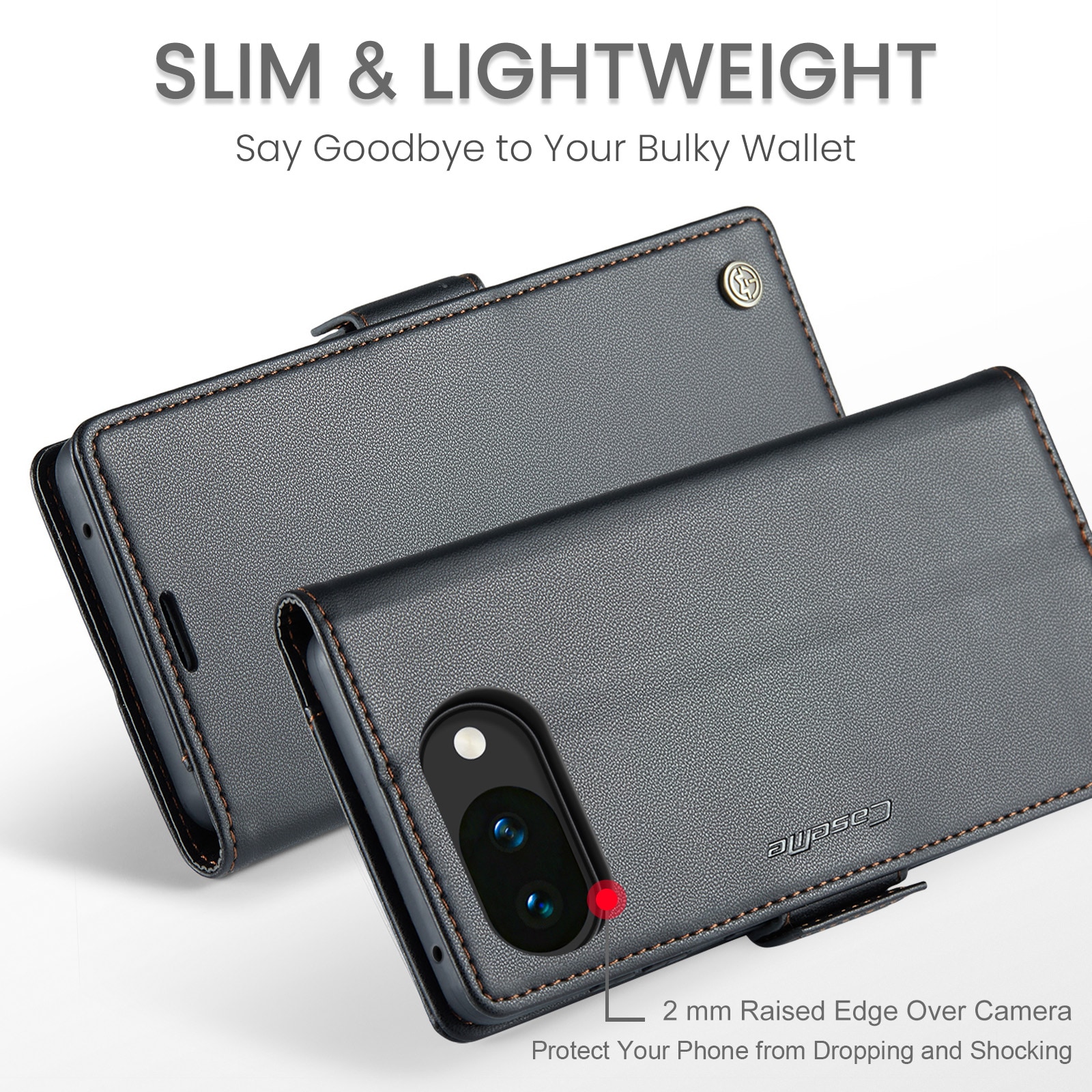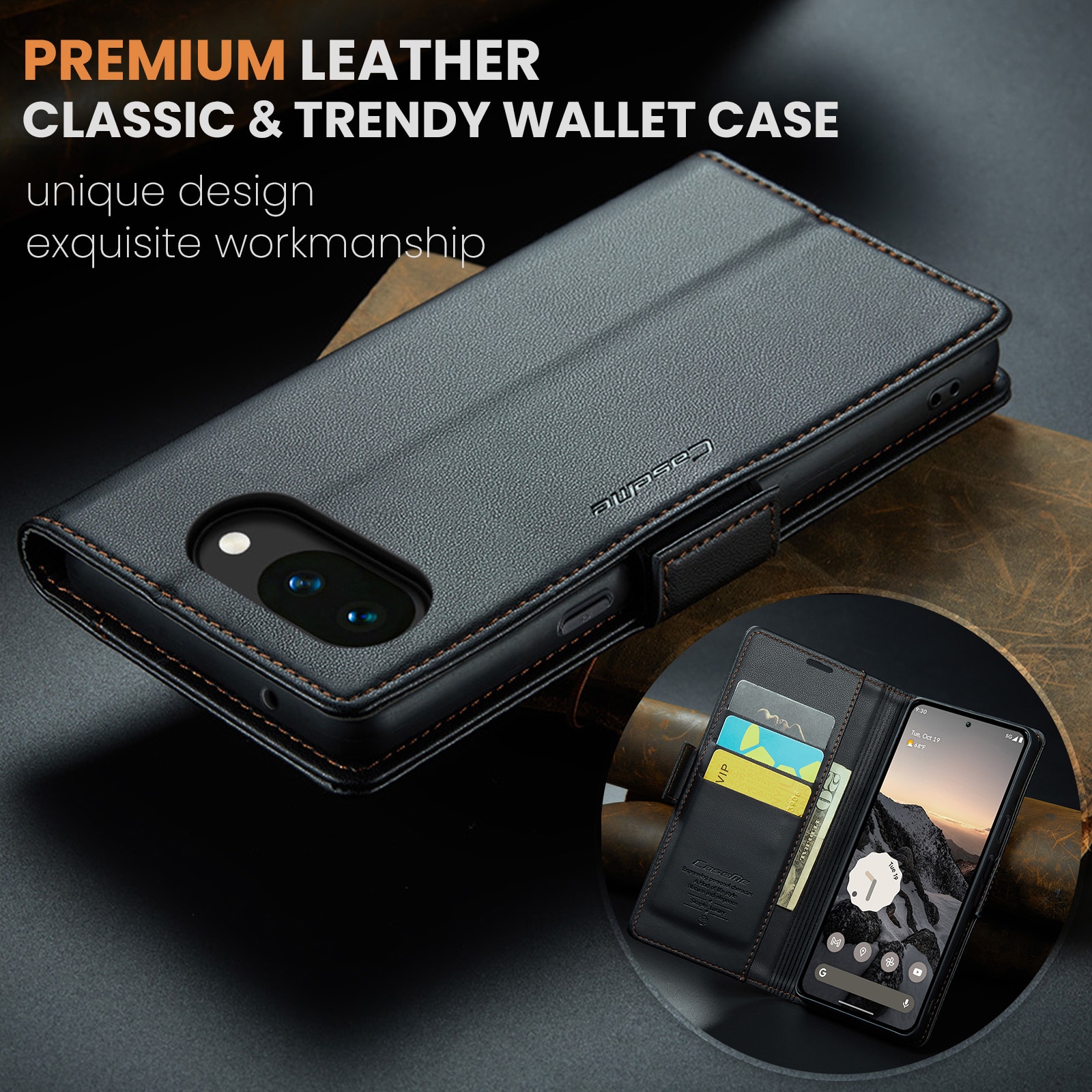 Slankt og praktisk pung-etui med RFID-beskyttelse fra CaseMe til Google Pixel 10a. Etuiet beskytter effektivt hele telefonen uden at gå på kompromis med stilen. Låget holdes lukket med usynlige magneter, hvilket giver etuiet et slankt design, der ikke gør telefonen klodset. RFID-beskyttelsen giver dig tryghed for, at dine kort er sikkert opbevaret i pung-etuiet.