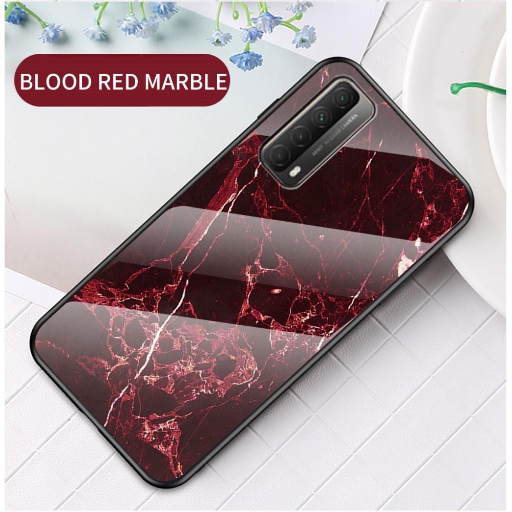Beskyttende cover med bagside i blankt og holdbart hærdet glas til Huawei P Smart 2021. Det hærdede glas giver telefonen et flot skær og fremhæver motivet nedenunder på bedste vis.