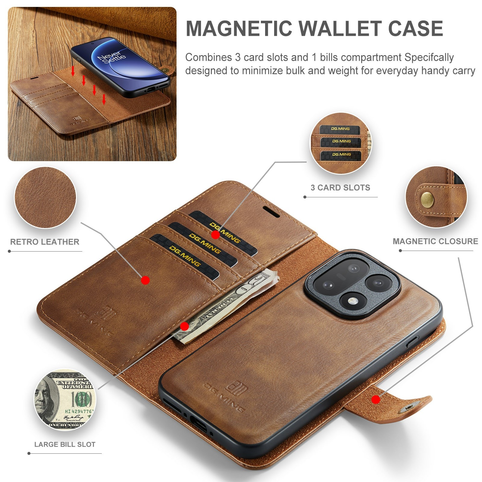 Etui med aftageligt magnetcover fra DG.MING. Etuiet har et klassisk og stilrent design. Det aftagelige cover gør, at du slipper for at bruge hele etuiet, perfekt når du er hjemme eller på arbejde.