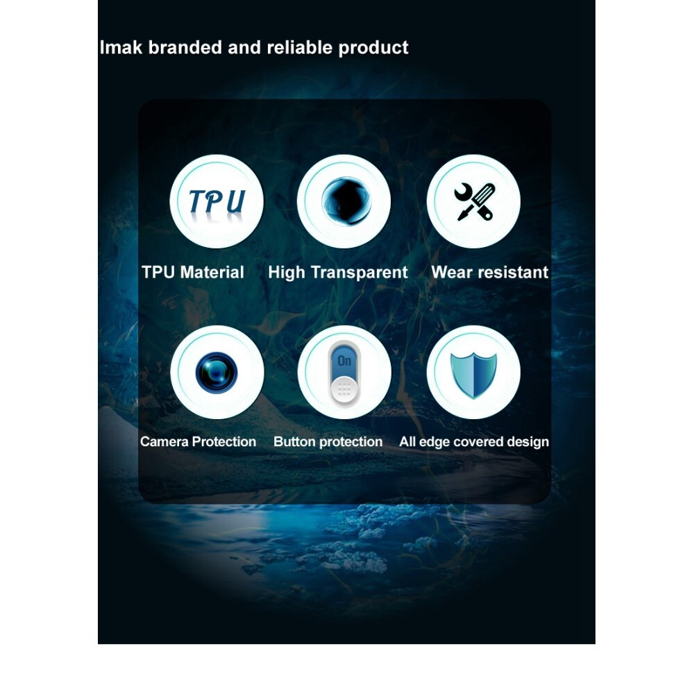 Gennemsigtigt TPU-mobilcover fra Imak. Coveret er helt gennemsigtigt, så man kan se telefonens oprindelige design.