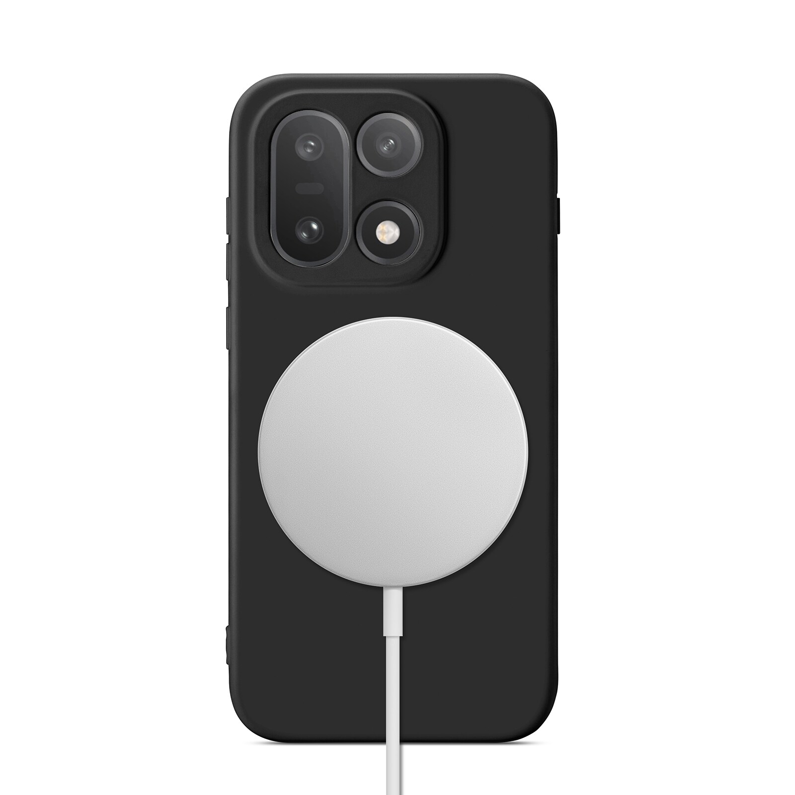 Coveret har en magnetisk ring på indersiden og er kompatibelt med MagSafe-tilbehør som opladere og kortholdere.