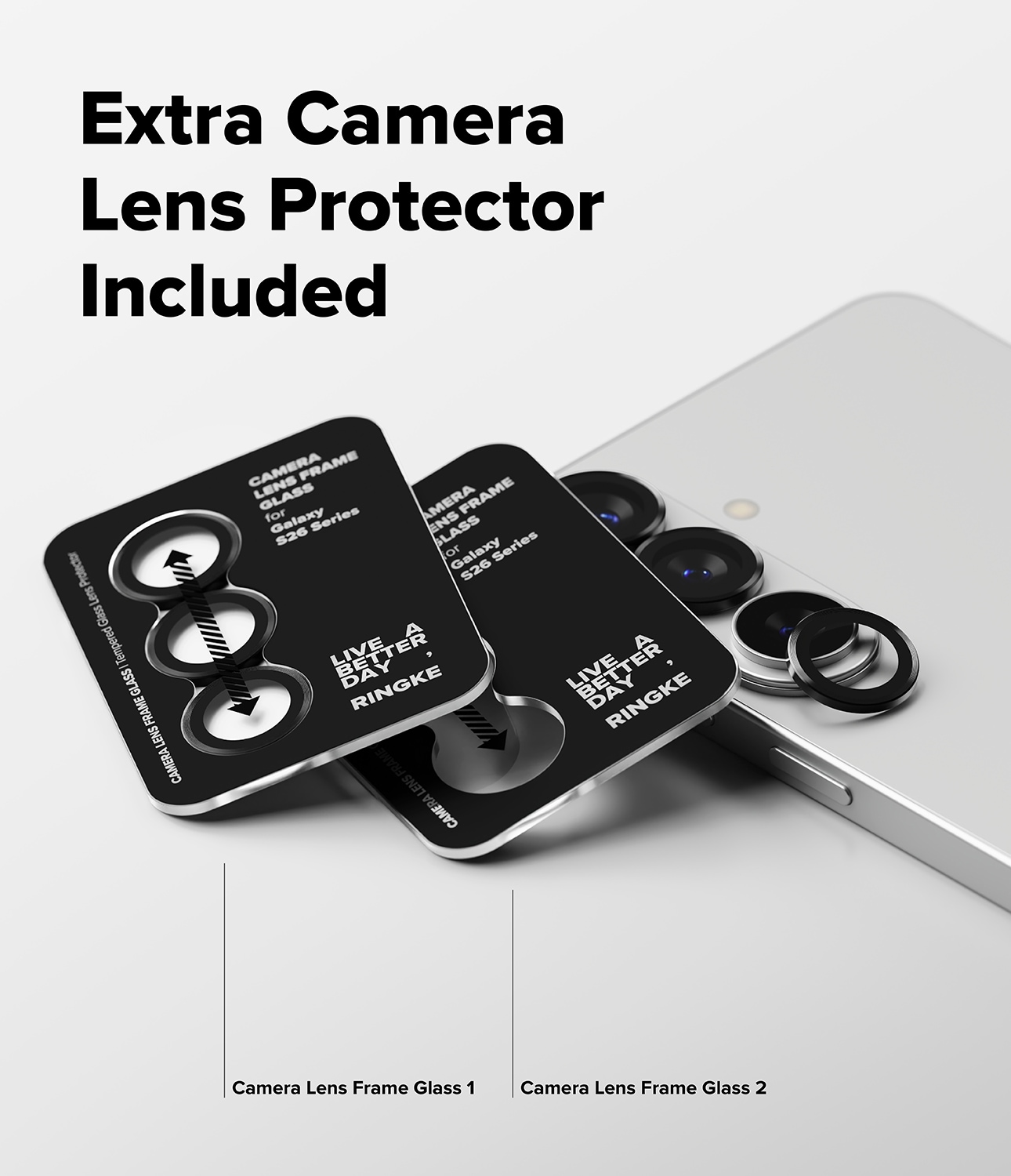 Beskyt kameralinserne på din Samsung Galaxy S26 Plus med dette 2-pak linsebeskyttelse af høj kvalitet fra Ringke. Linsebeskyttelserne er lavet af tyndt hærdet glas og er omgivet af en ramme i aluminium, der både er stødabsorberende og stilfuld.