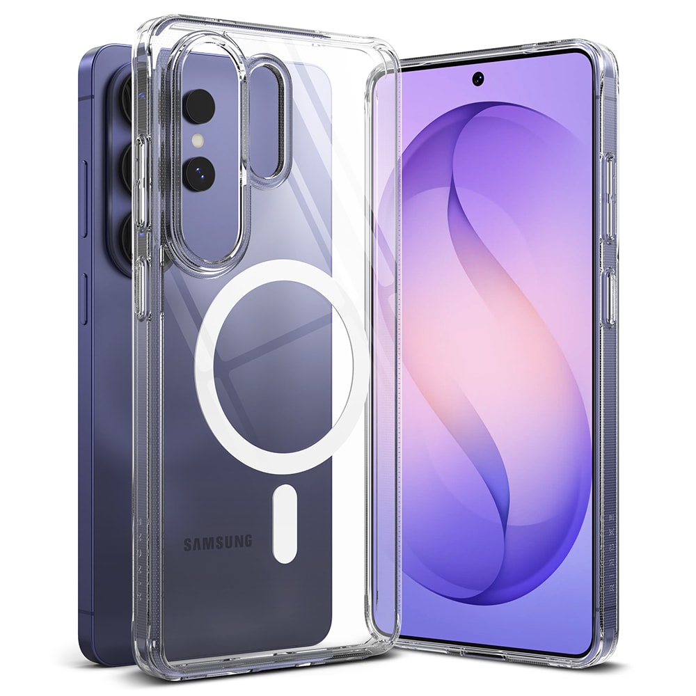 Gennemsigtigt cover fra Ringke, der understøtter MagSafe. Ringke Fusion giver din telefon optimal beskyttelse, næsten helt uden at kunne ses. For optimal beskyttelse har coveret en støddæmpende ramme, der dæmper stød og slag, hvis telefonen tabes, og en bagside i hårdt polykarbonat.