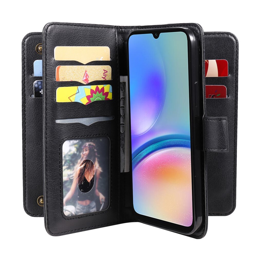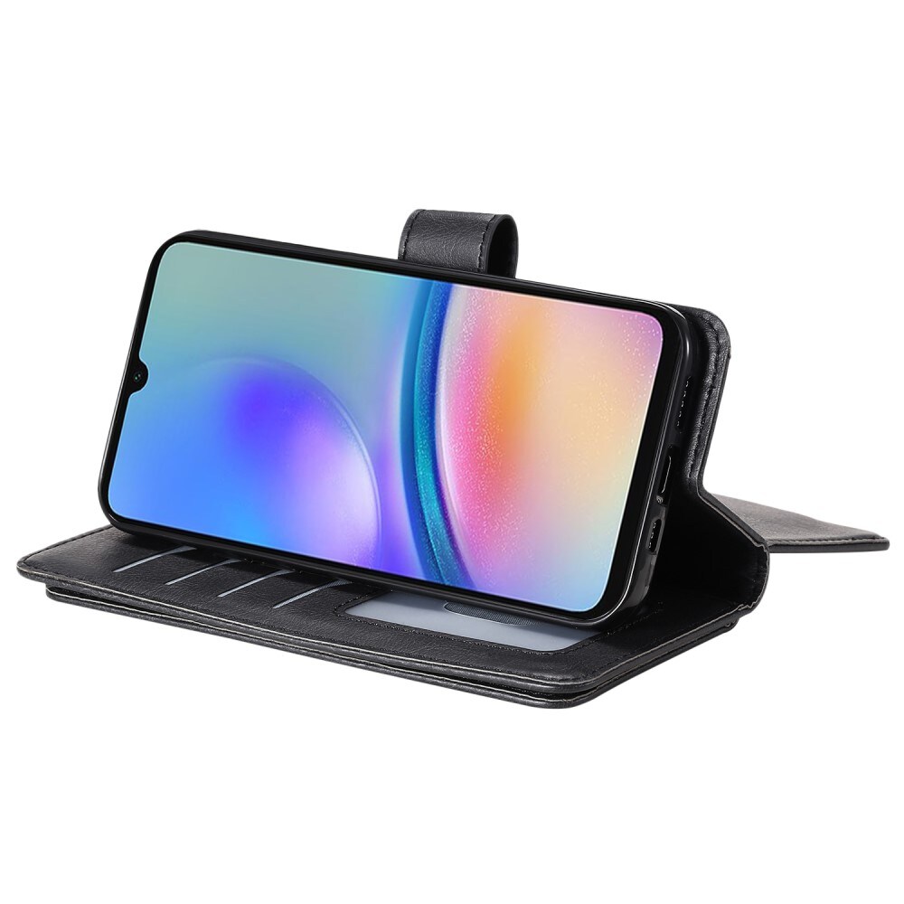 Mobiltaske til Samsung Galaxy A05s med mange kortpladser, fremstillet i kunstlæder. Mobiltasken beskytter hele telefonen, samtidig med at du kan medbringe alle dine kort, kontanter og kvitteringer. Vesken kan omdannes til et mobilstativ til din telefon, perfekt når du eller dine børn skal se film, serier eller YouTube. Inderskallen er fastgjort i vesken, hvilket giver ekstra beskyttelse til din mobil, hvis du taber den. Vesken holdes lukket med en praktisk magnetisk flap, hvilket gør, at du kan opbevare din telefon i tasken uden risiko for at skærmen bliver ridset af andre genstande.