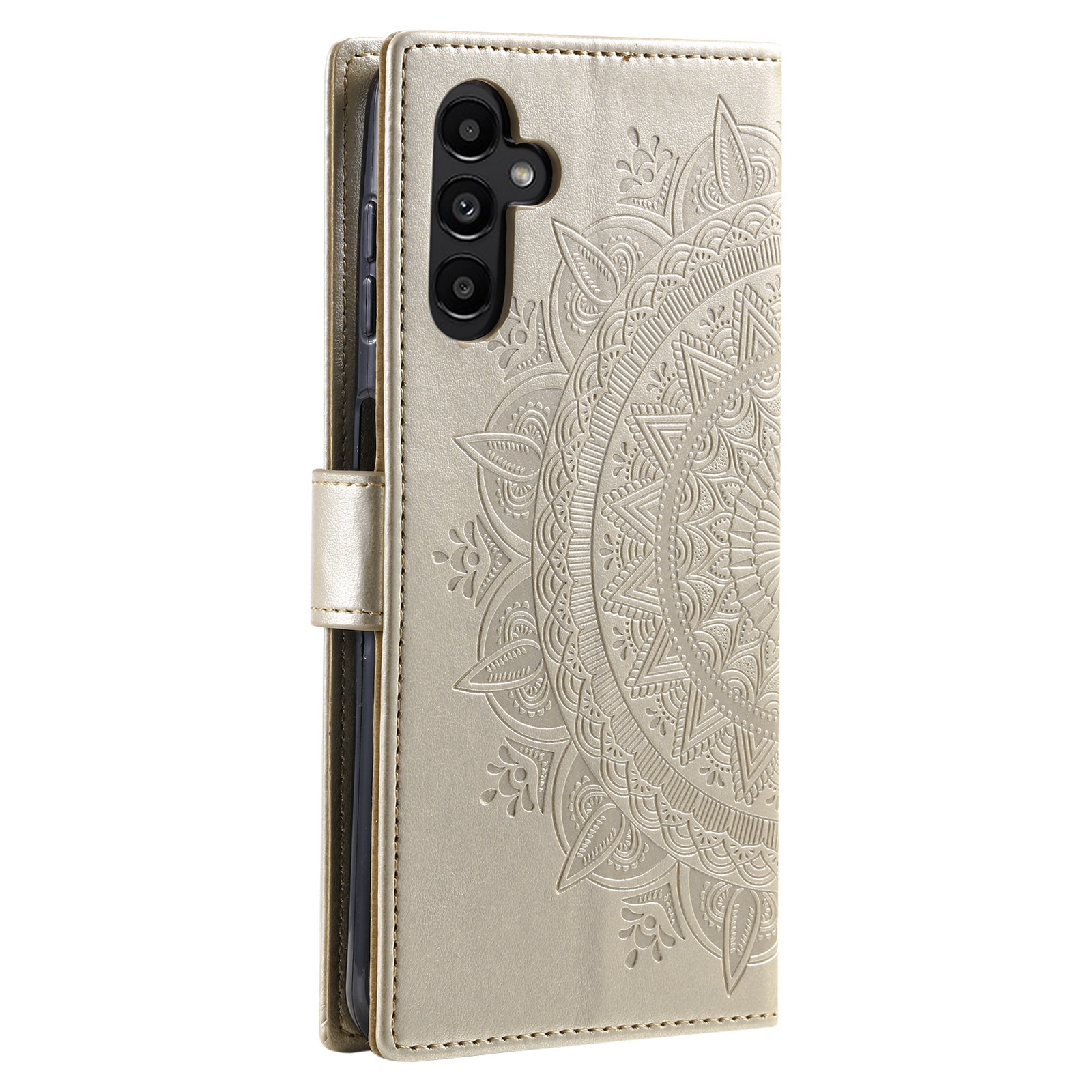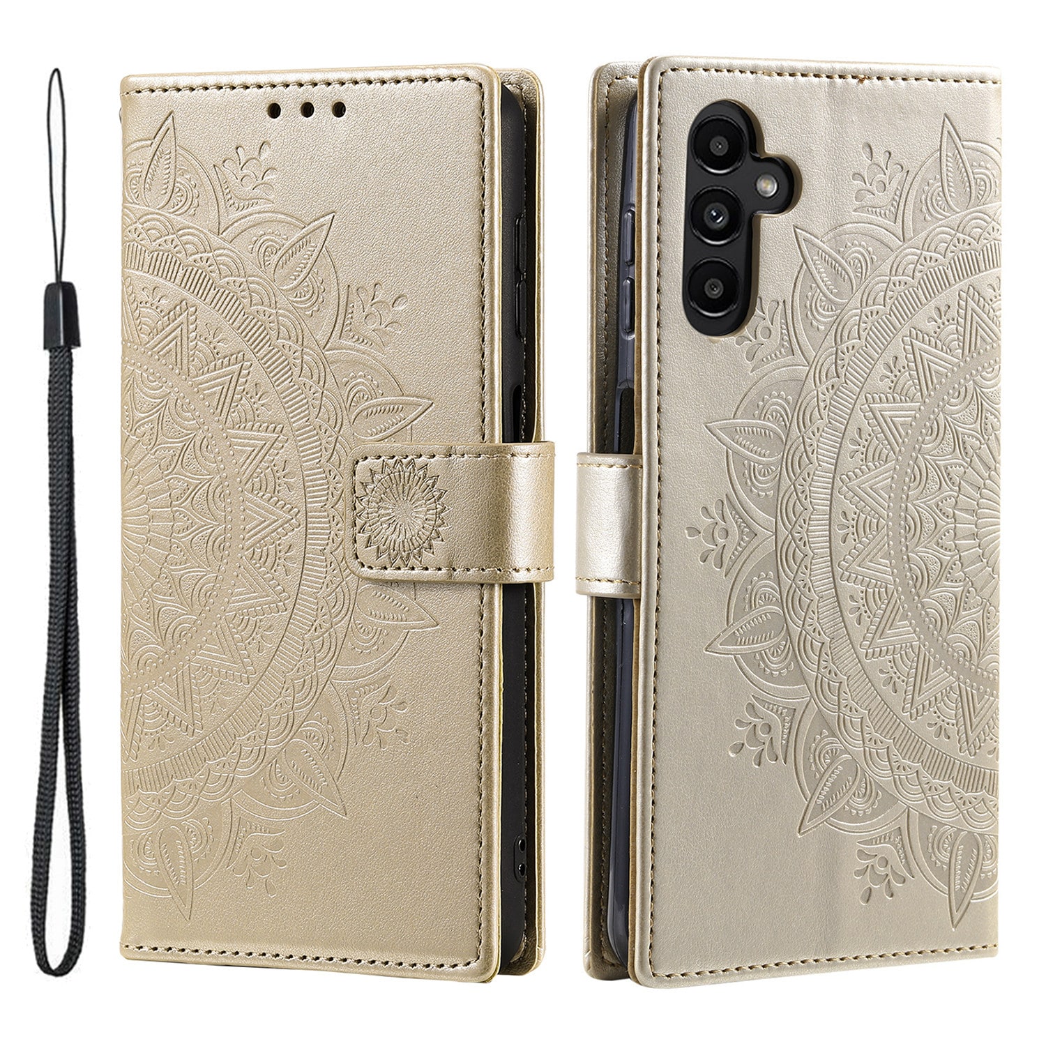 Mobiletui med mandala og mønster præget i læderet. Tegnebogsetuiet har et flot design og beskytter hele telefonen, så du undgår skader, ridser og snavs.
