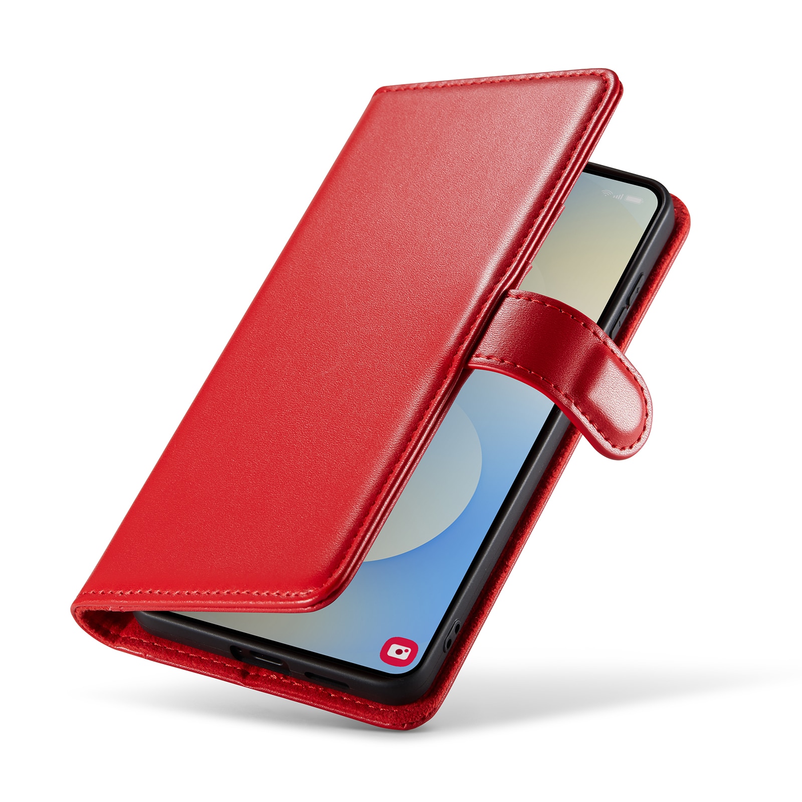Telefonen sidder sikkert fast i det stødabsorberende TPU-cover, og skjules bag frontcoveret, der holdes lukket med et magnetspænde. På den måde beskyttes både telefonens for- og bagside mod skader.