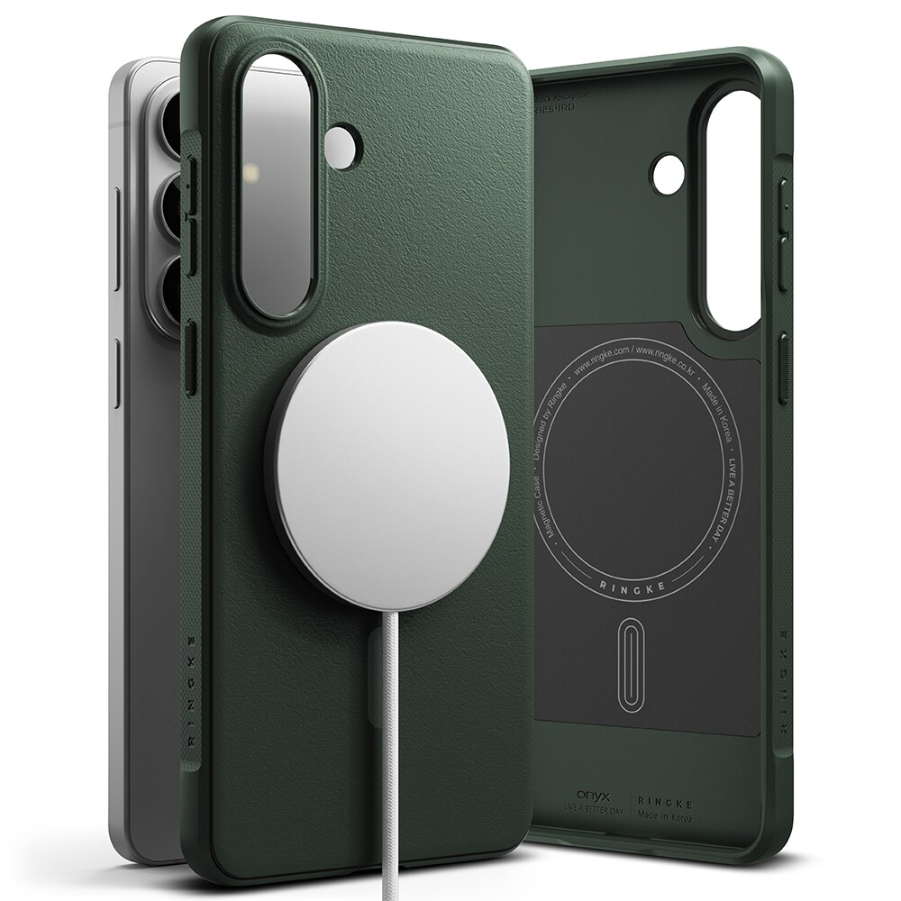 Onyx Magnetic er et robust cover fra Ringke til Samsung Galaxy S26 Plus med MagSafe. Et cover der kombinerer flot design med effektiv stødabsorbering. Det har forstærkede hjørner, hævede kanter og taktile knapper. Takket være MagSafe-støtten kan du bruge MagSafe-tilbehør og oplade trådløst uden at tage coveret af.