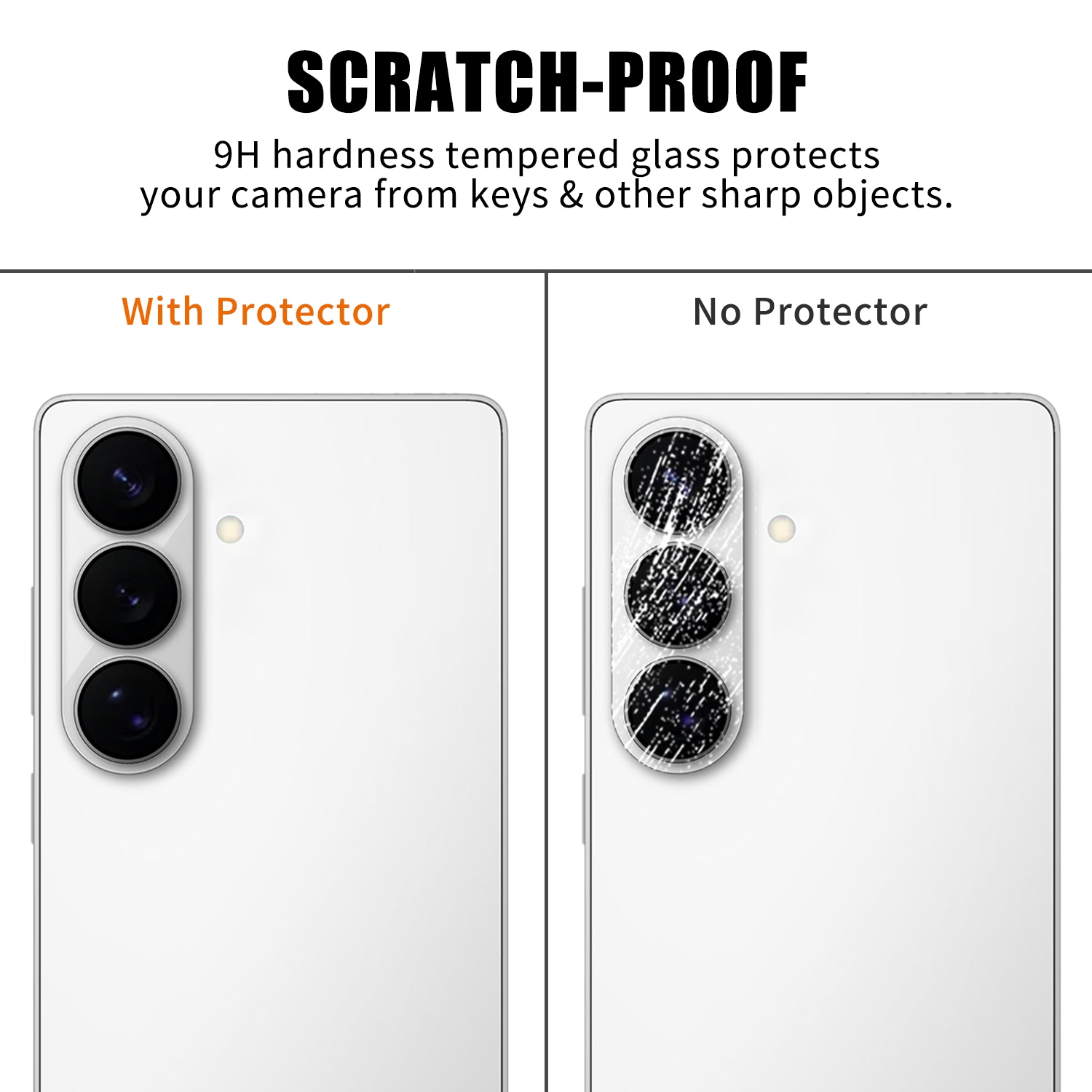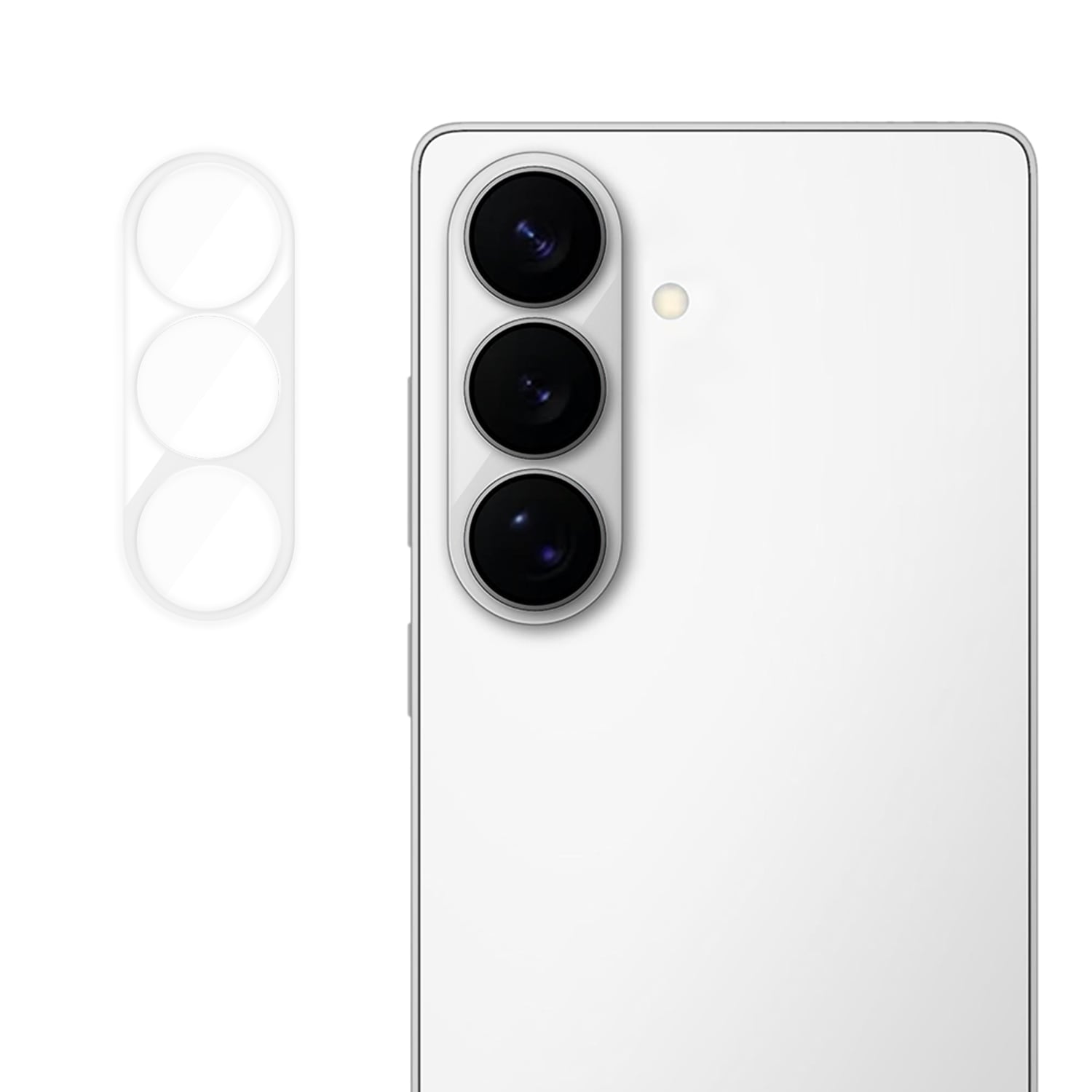 Kameralinsebeskytter i hærdet glas til Samsung Galaxy S26 Plus, udviklet til at beskytte kameramodulet mod ridser, stød og ydre slitage. Beskytteren er fulddækkende og dækker både linser og kamerahus. Når den er monteret, er beskytteren diskret og påvirker ikke telefonens udseende.