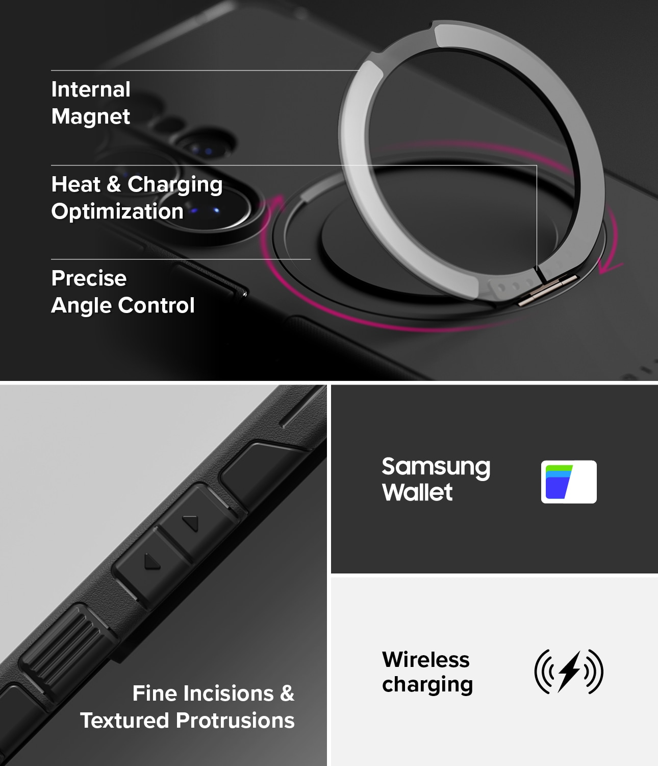 Alles Magnetic er et meget praktisk cover fra Ringke. Et cover med den uslåelige kombination af stilfuldt design og god stødbeskyttelse. Coveret har forstærkede hjørner, hævede kanter og taktile knapper. MagSafe-støtten gør det muligt at bruge MagSafe-tilbehør og oplade med coveret på. Coveret har også en indbygget støtte, så du nemt kan stille din telefon op, når det ønskes.