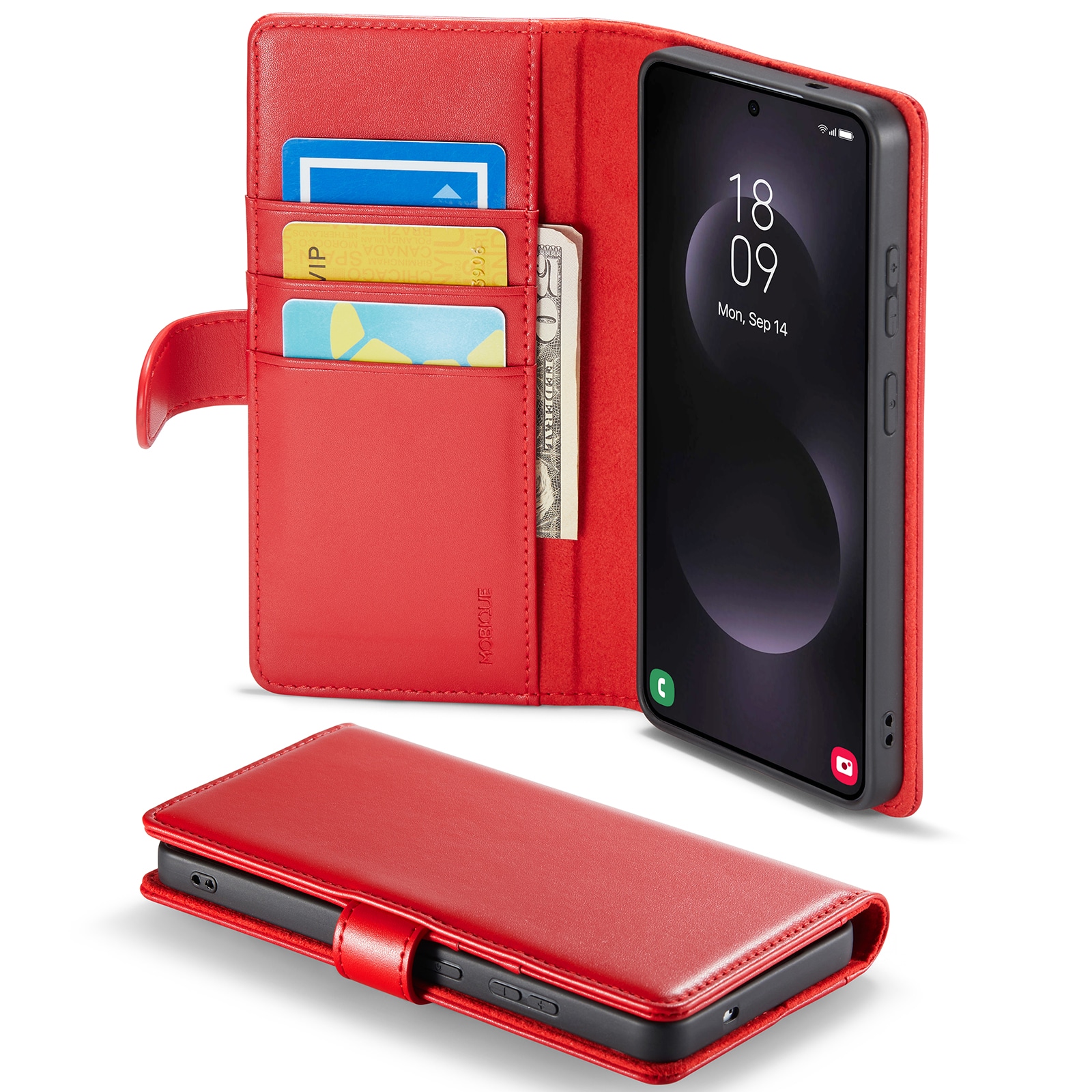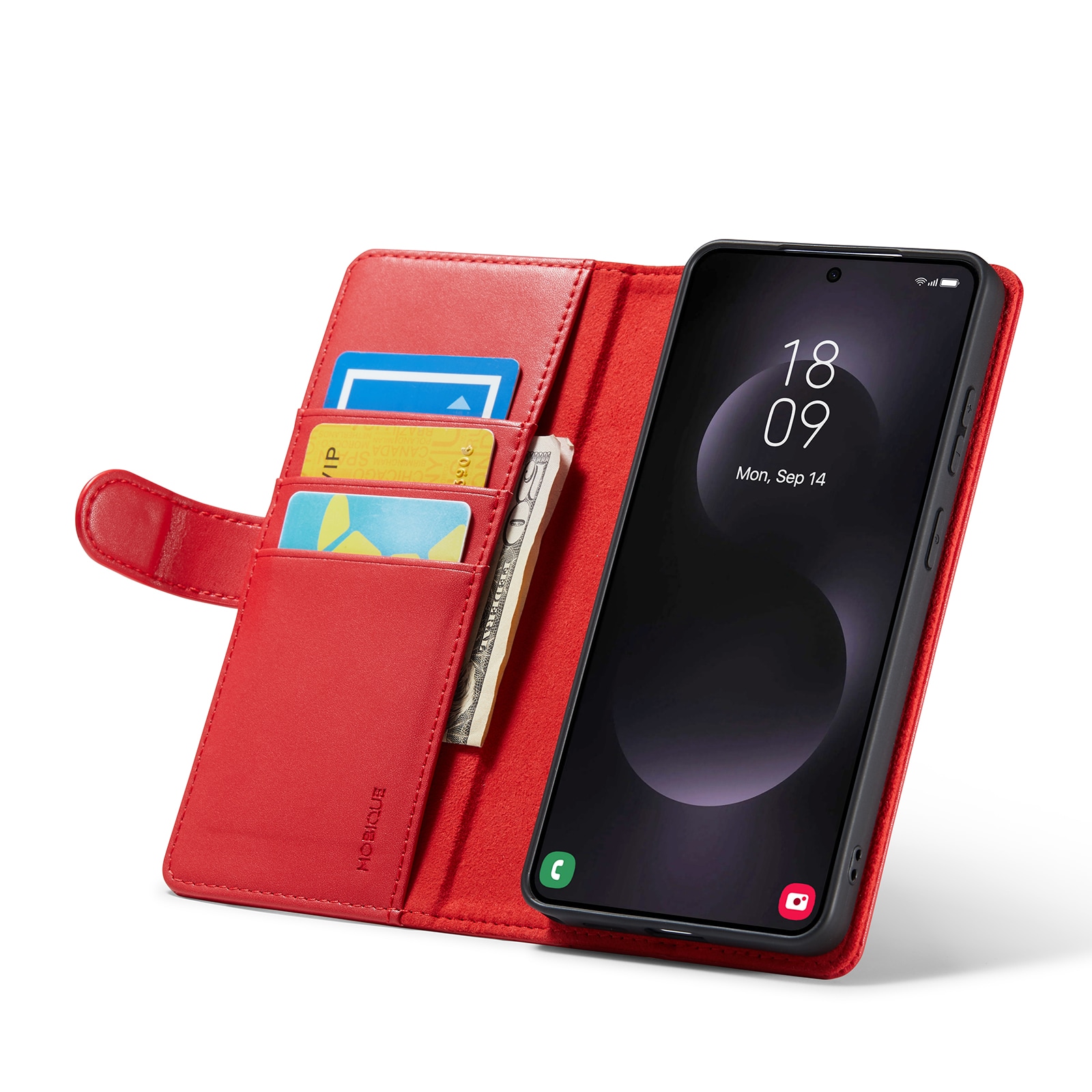 Tegnebogsetuiet kan forvandles til et stativ til din telefon, perfekt når du eller din familie skal se film eller serier