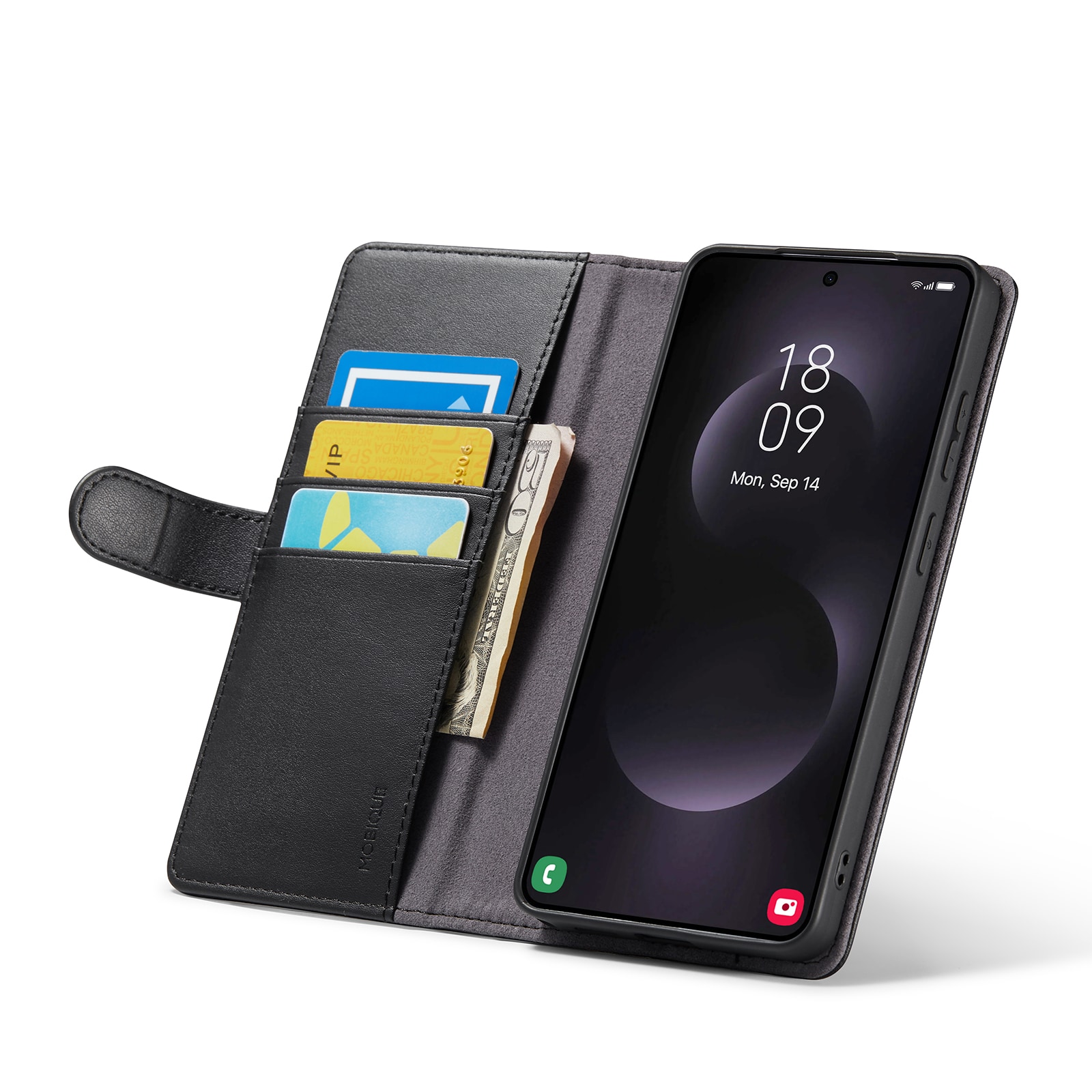 Tegnebogsetuiet kan forvandles til et stativ til din telefon, perfekt når du eller din familie skal se film eller serier