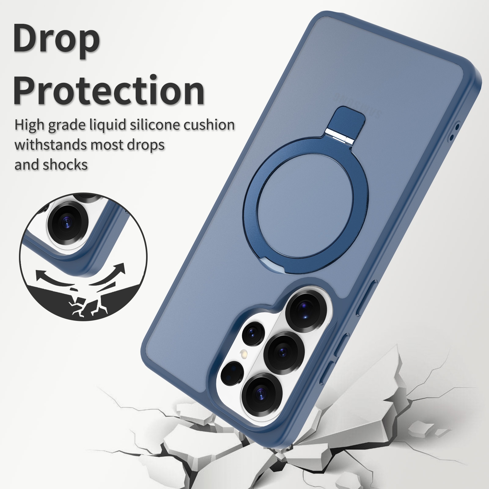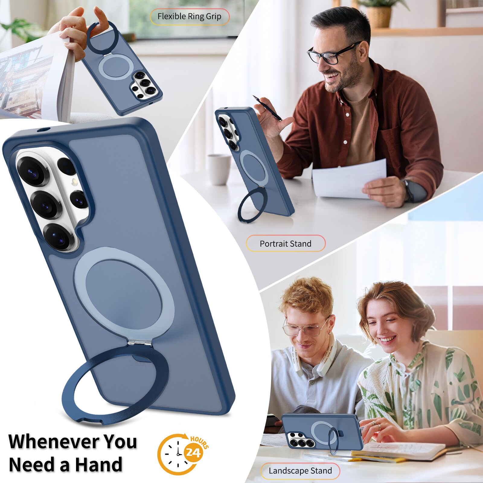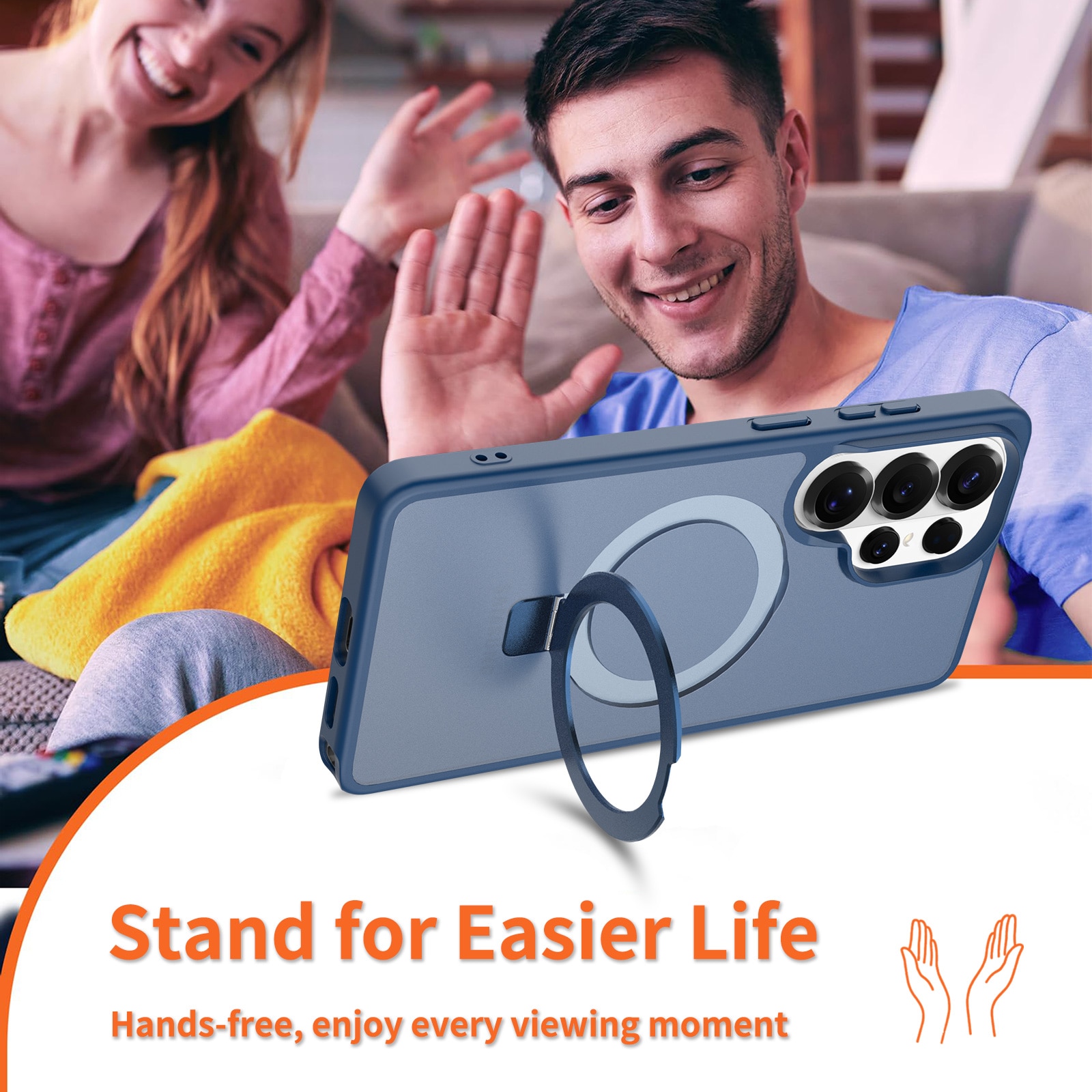 Mobilcover med udtrækkelig magnetisk ring til Samsung Galaxy S26 Ultra. For optimal beskyttelse mod stød og tab har coveret et todelt design med en TPU-kerne og en ydre skal i hård plast. Ringen på bagsiden er magnetisk og kan bruges sammen med MagSafe-kompatibelt tilbehør såsom opladere og kortholdere. Ringen kan også fungere som et stativ til at se film, videoer eller spille spil.
