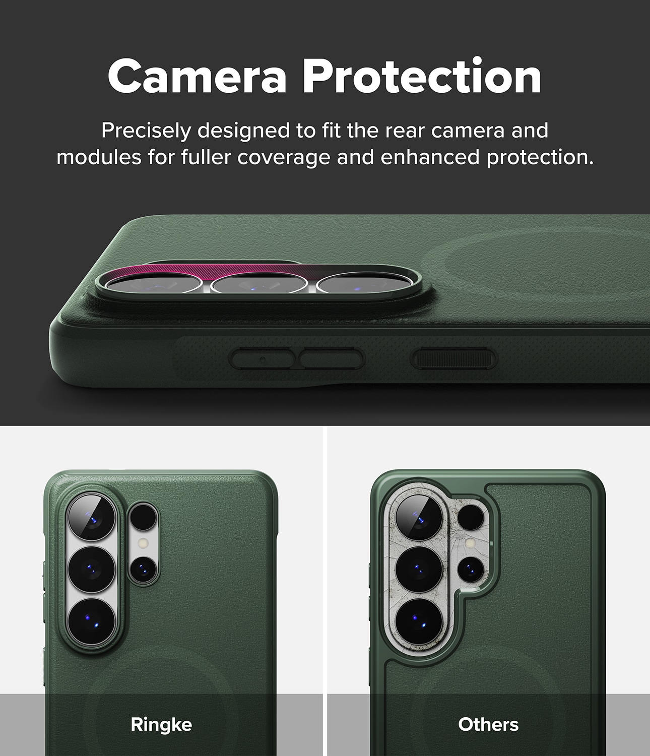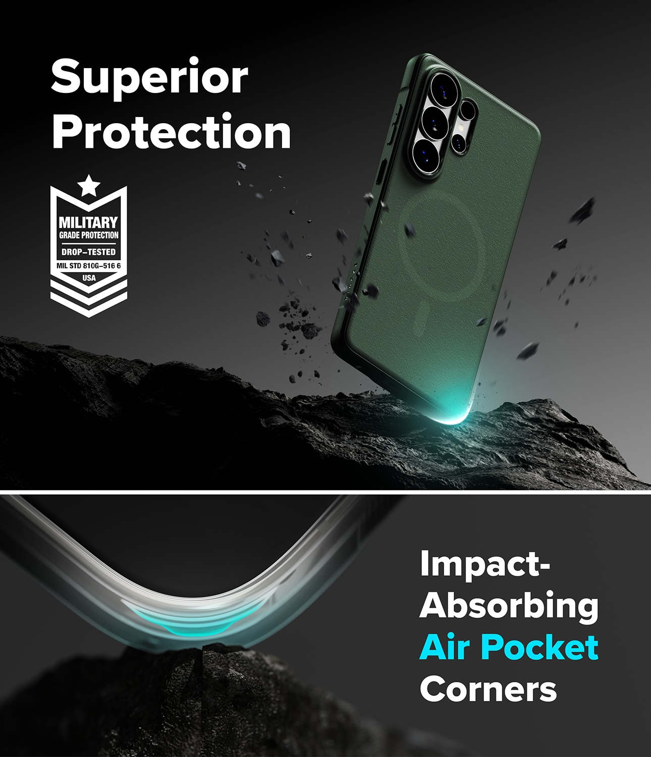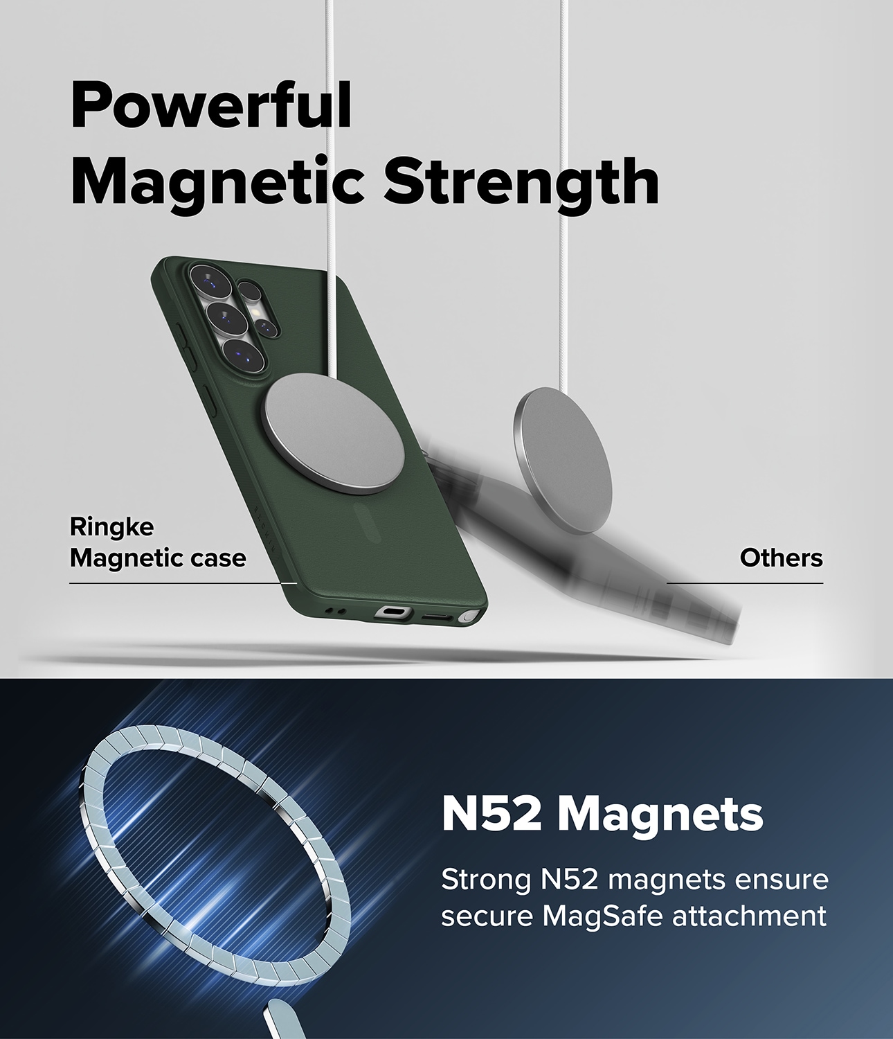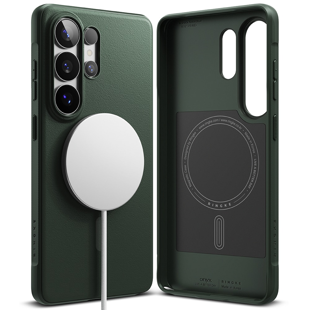 Onyx Magnetic er et robust cover fra Ringke til Samsung Galaxy S26 Ultra med MagSafe. Et cover der kombinerer flot design med effektiv stødabsorbering. Det har forstærkede hjørner, hævede kanter og taktile knapper. Takket være MagSafe-støtten kan du bruge MagSafe-tilbehør og oplade trådløst uden at tage coveret af.