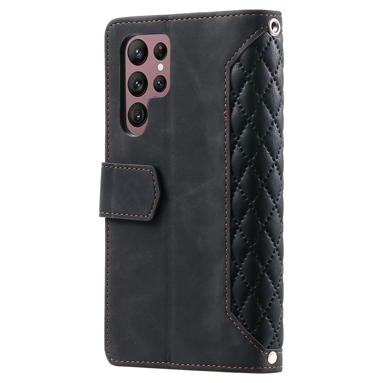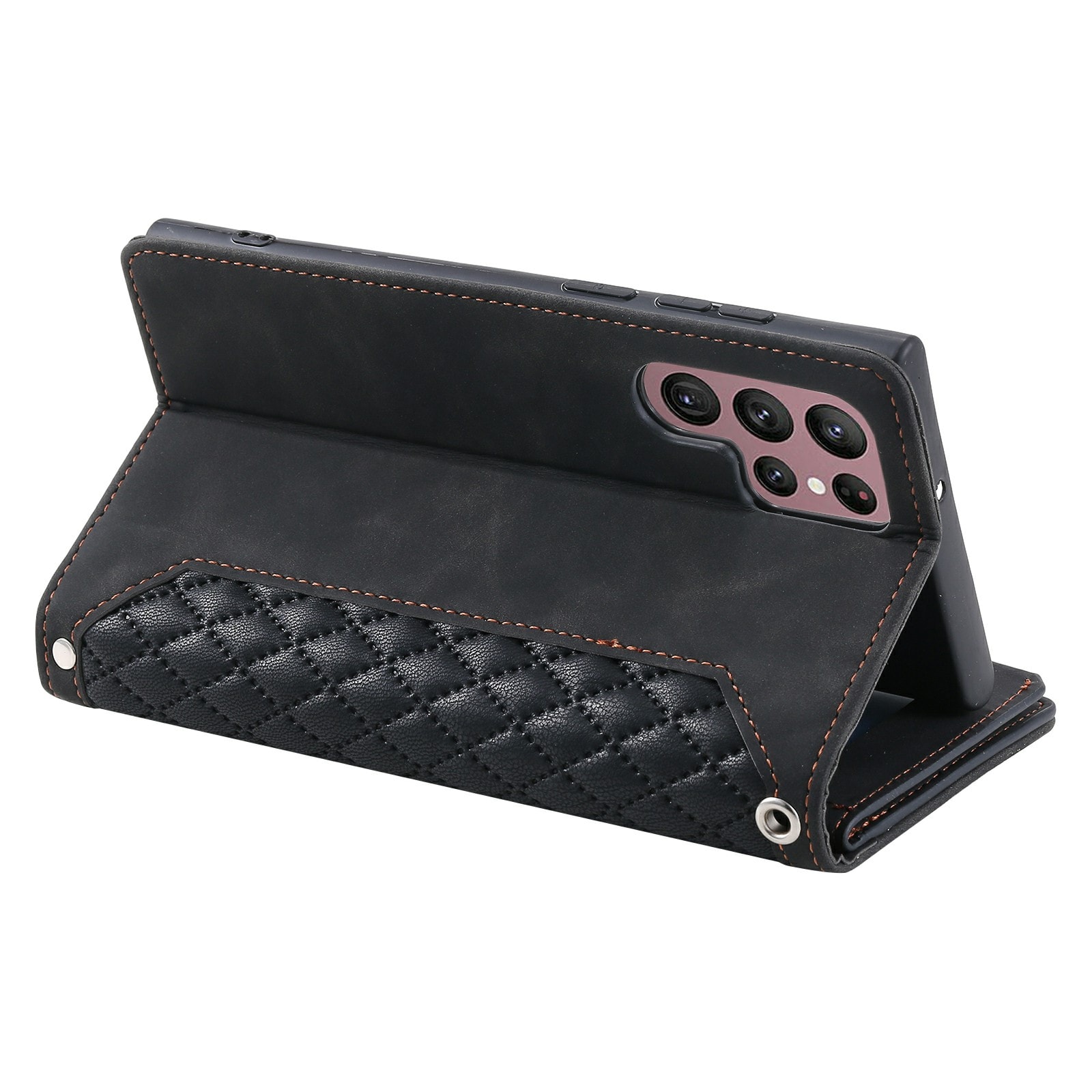 Multifunktionelt mobilcover til Samsung Galaxy S26 Ultra med et flot quiltet ydre. Coveret er lavet af kunstlæder og har et indvendigt TPU-skal, der absorberer stød og giver god beskyttelse til din telefon.