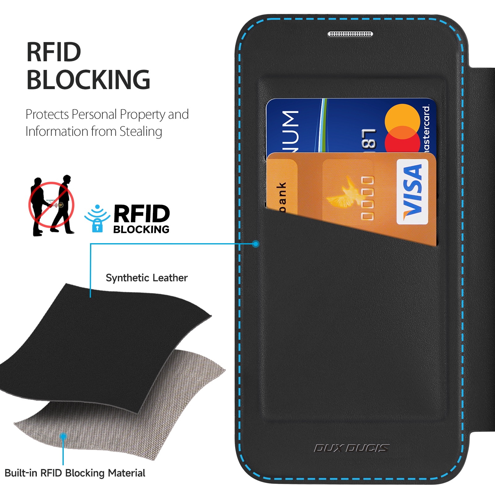 Frontcoveret, der beskytter skærmen mod ridser og skader, har et praktisk kortrum. Kortlommen på coveret har indbygget RFID-blokering, så du kan føle dig tryg med, at dine kort er sikkert opbevaret.