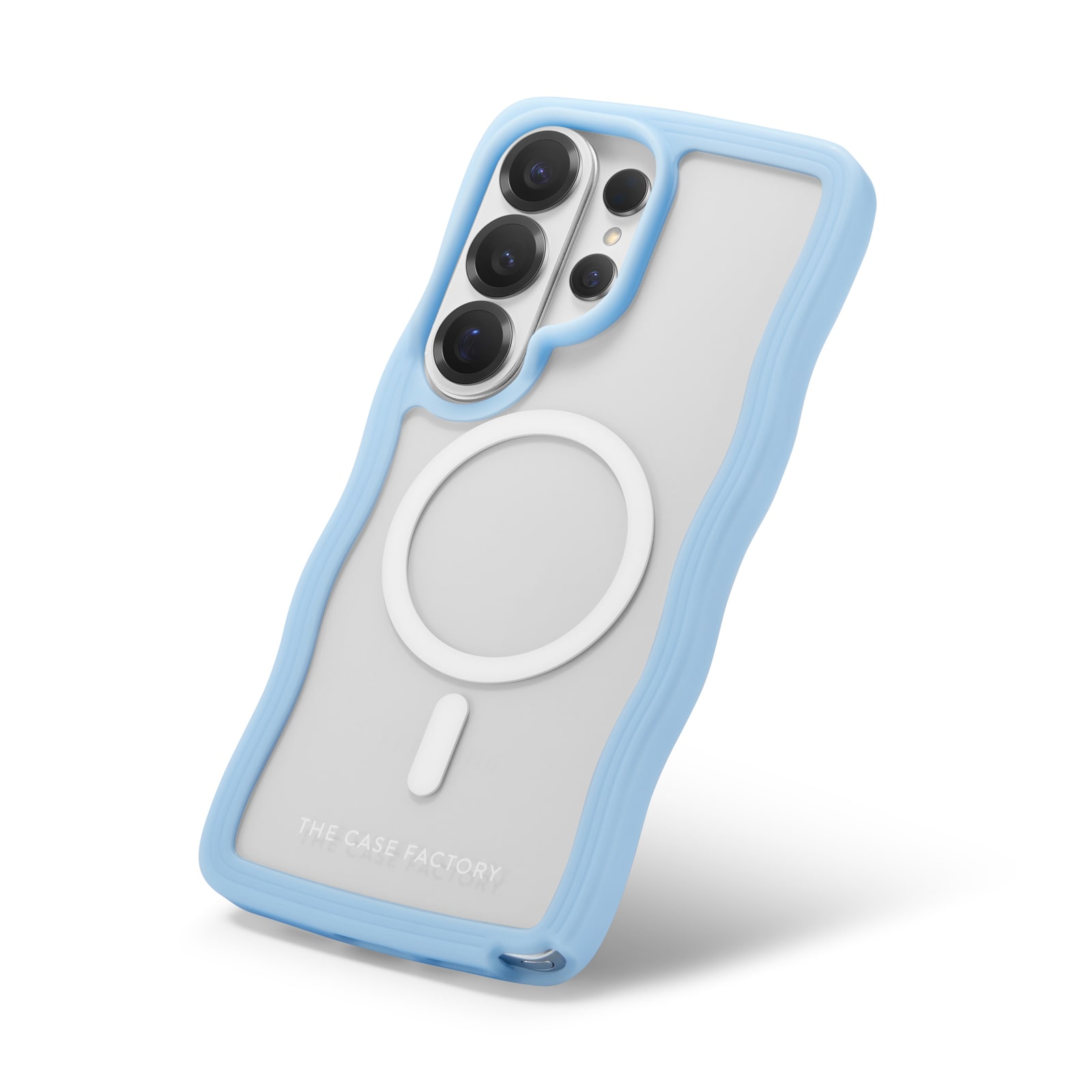 Elegant MagSafe-kompatibelt mobilcover med bølgeinspireret design til din Samsung Galaxy S26 Ultra fra The Case Factory. Coveret er fremstillet i stødabsorberende hård plast og har en blød, fleksibel TPU-ramme, der giver et unikt og stilrent look. Den bølgede kant gør coveret ekstra grebsvenligt, ligger godt i hånden og mindsker risikoen for, at telefonen glider ud af hånden.