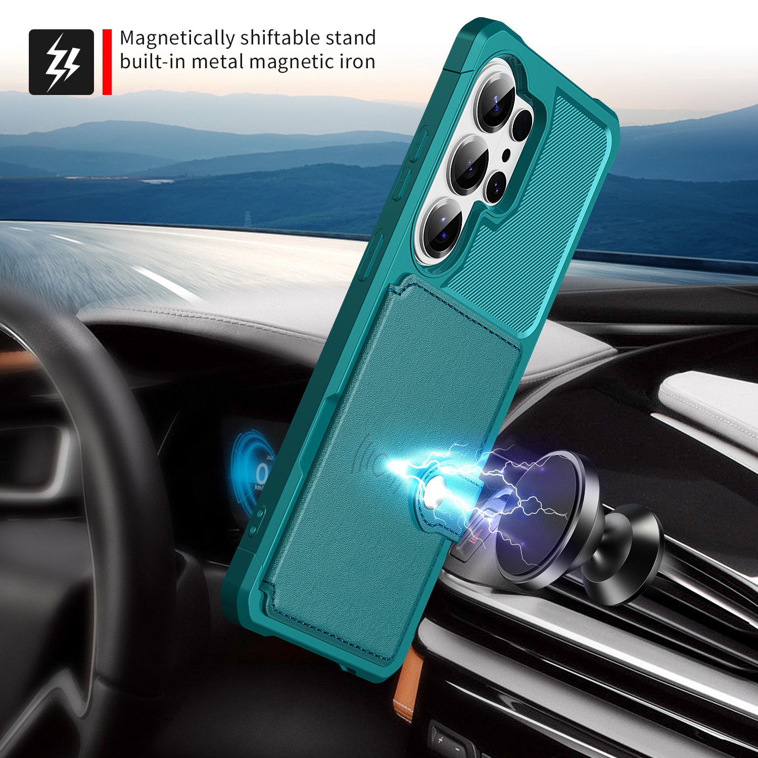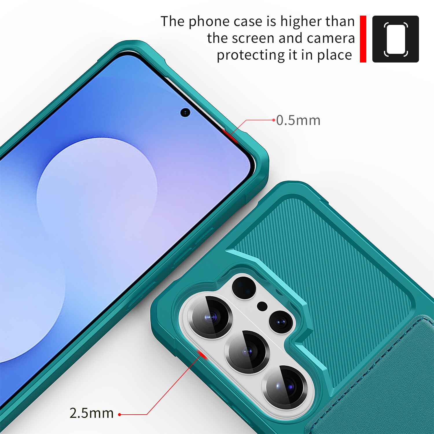 Stødabsorberende mobilcover med skjult kortholder på bagsiden. Coveret har et flot design og forstærkede hjørner for den bedste beskyttelse.