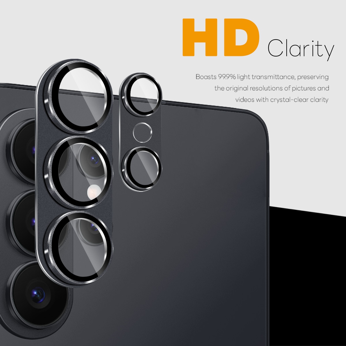 Beskyt kameraet på din Samsung Galaxy S26 Ultra med dette fulddækkende kameralåg fra Northjo. Beskyttelsen har en metalramme, der dækker hele kameramodulet, og en mat finish, som giver et stilrent og diskret udtryk. Det hærdede glas med 9H-hårdhed beskytter linserne mod ridser og stød, samtidig med at det bevarer høj billedkvalitet, så både billeder og videoer forbliver skarpe og klare.