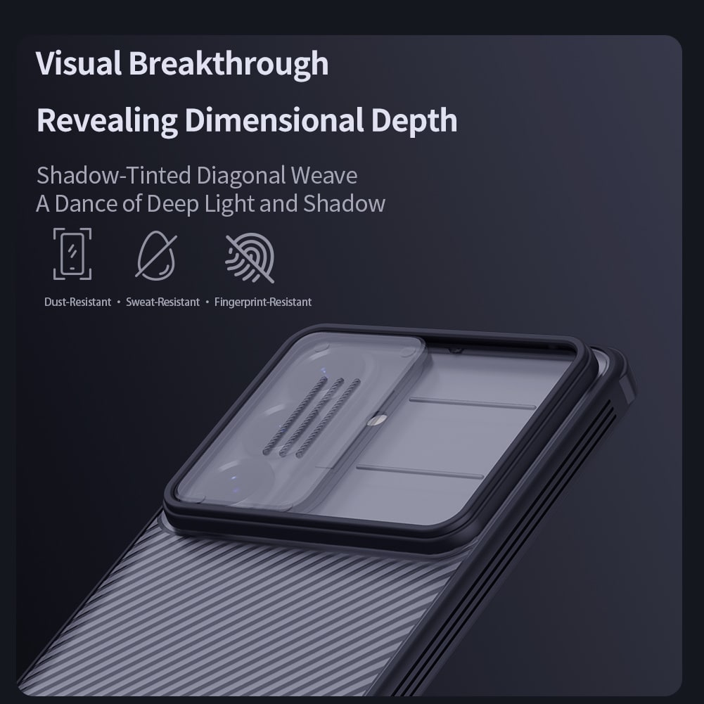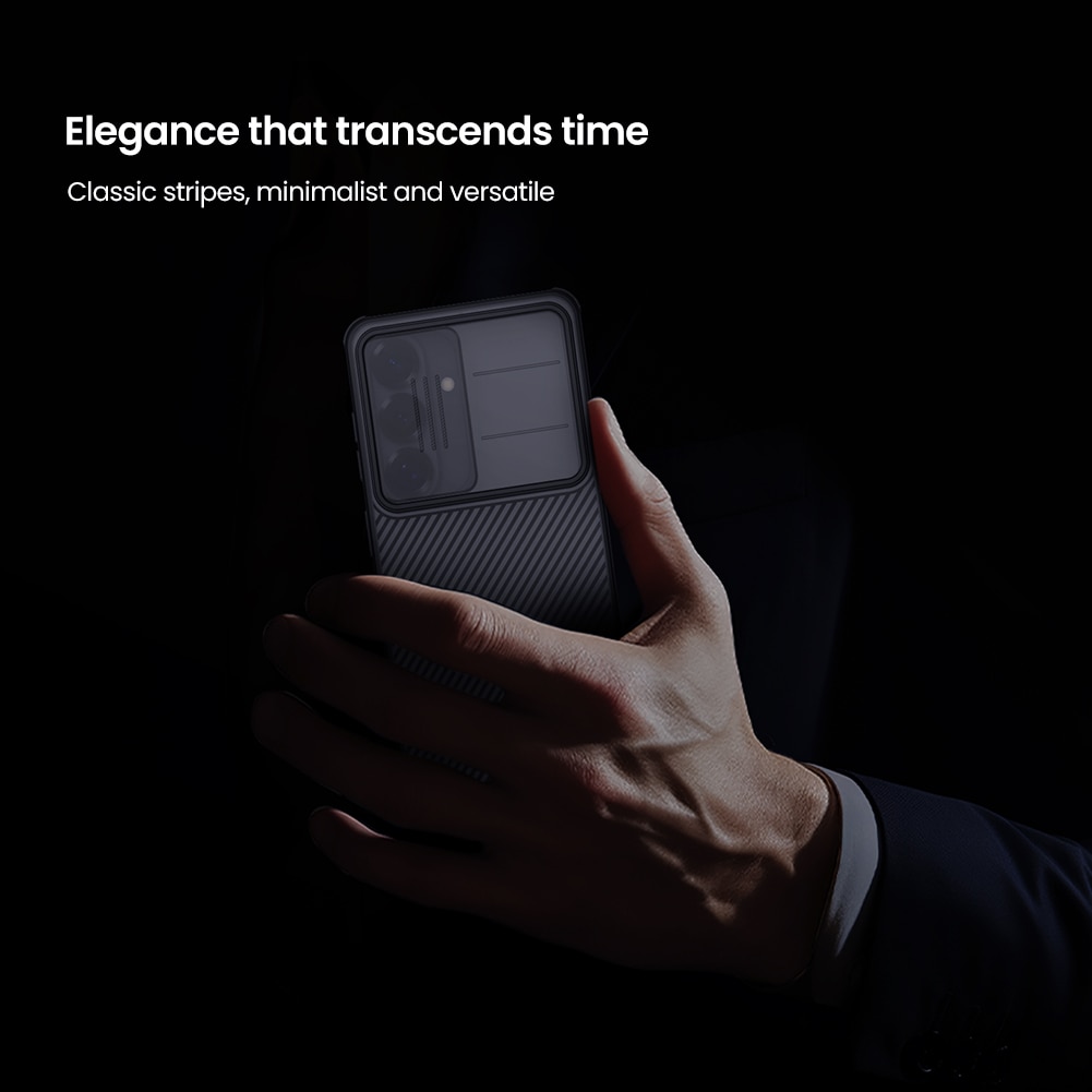 Cover med kamerabeskyttelse og et flot design fra Nillkin. For at beskytte kameraet mod ridser og skader har coveret en klap, som nemt kan skubbes hen foran kameraet, når du ikke bruger det.